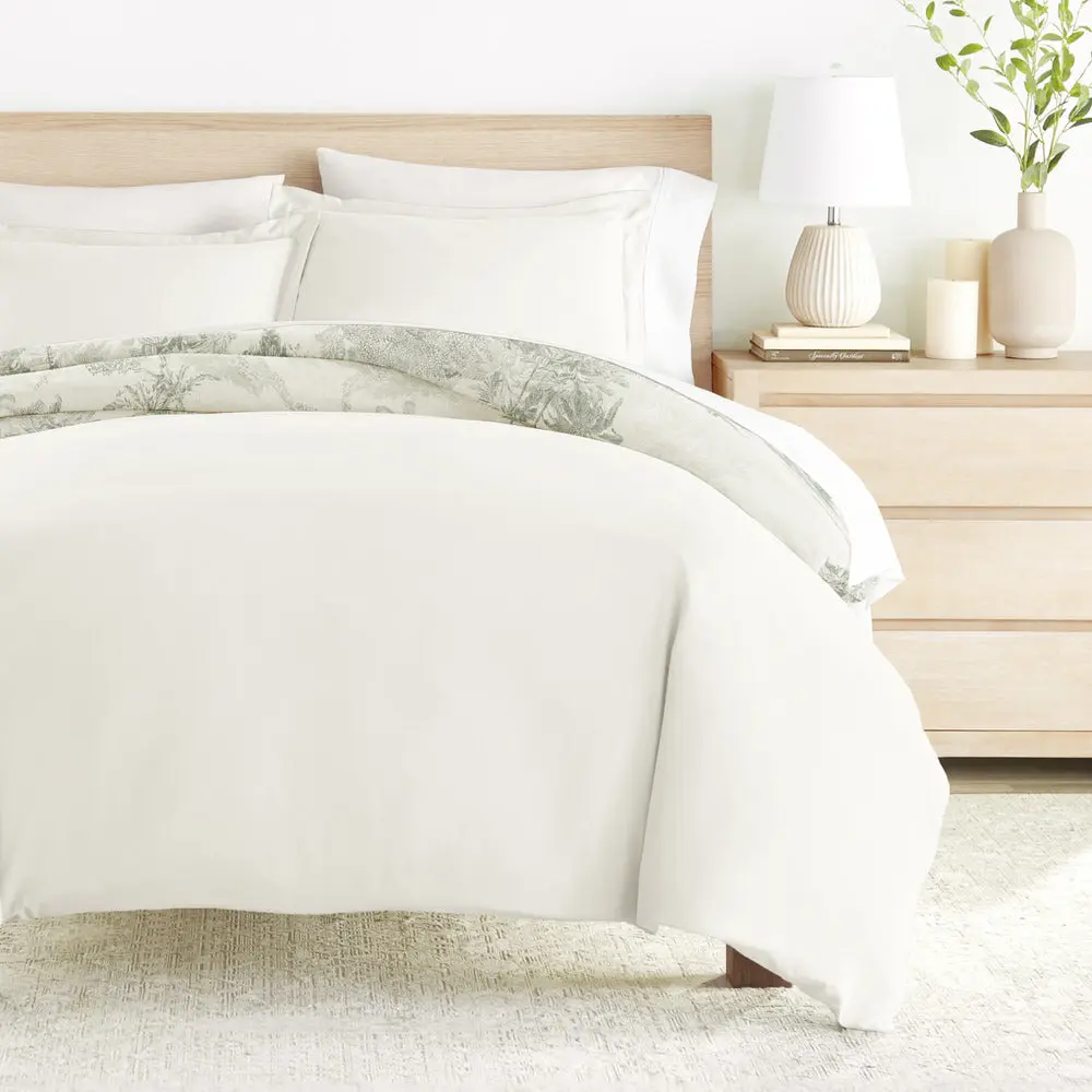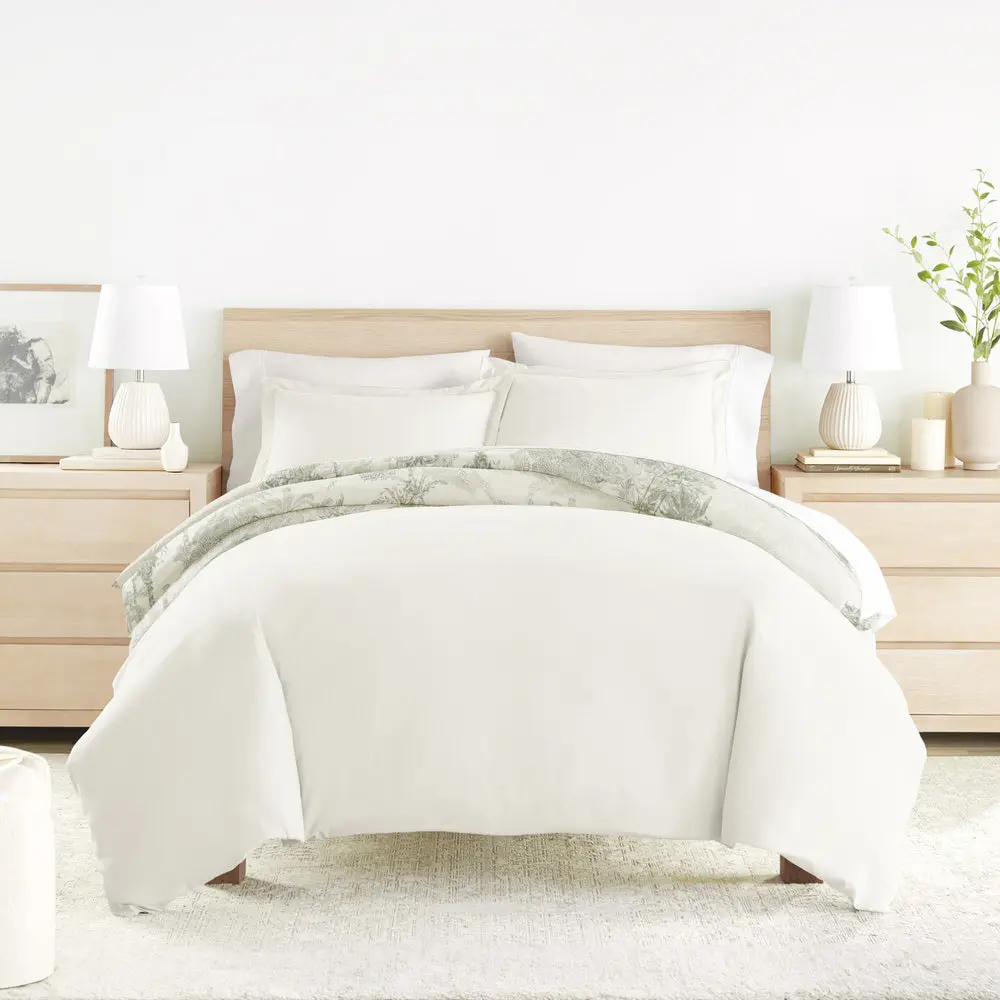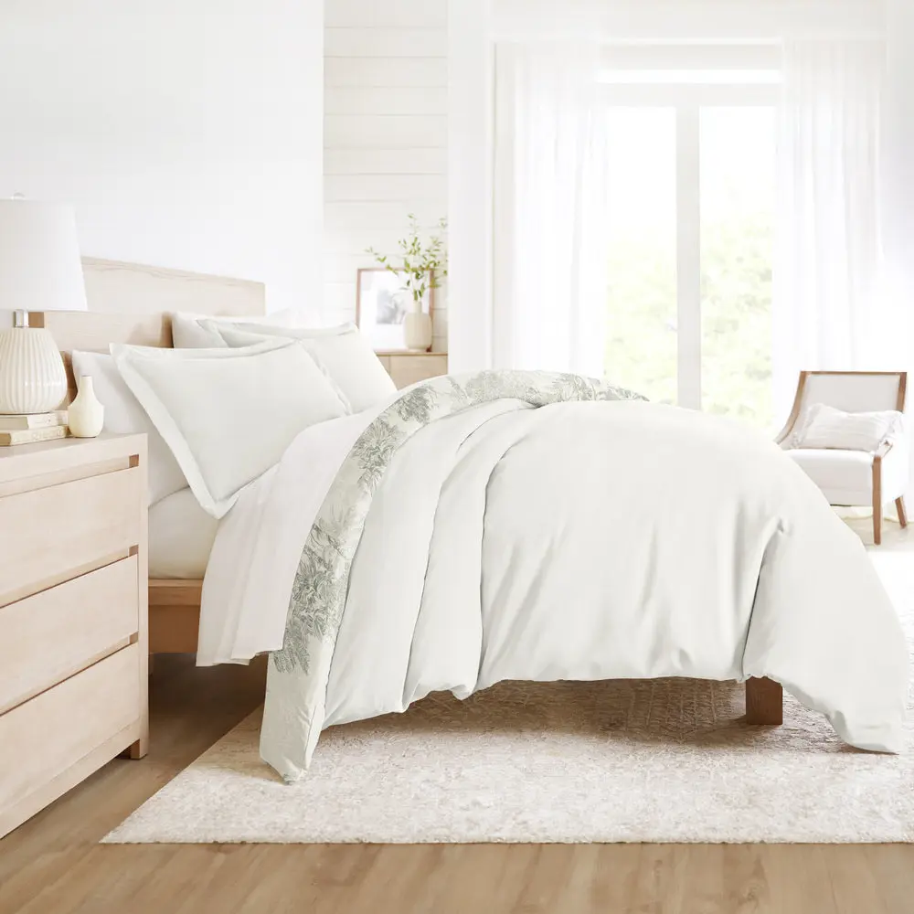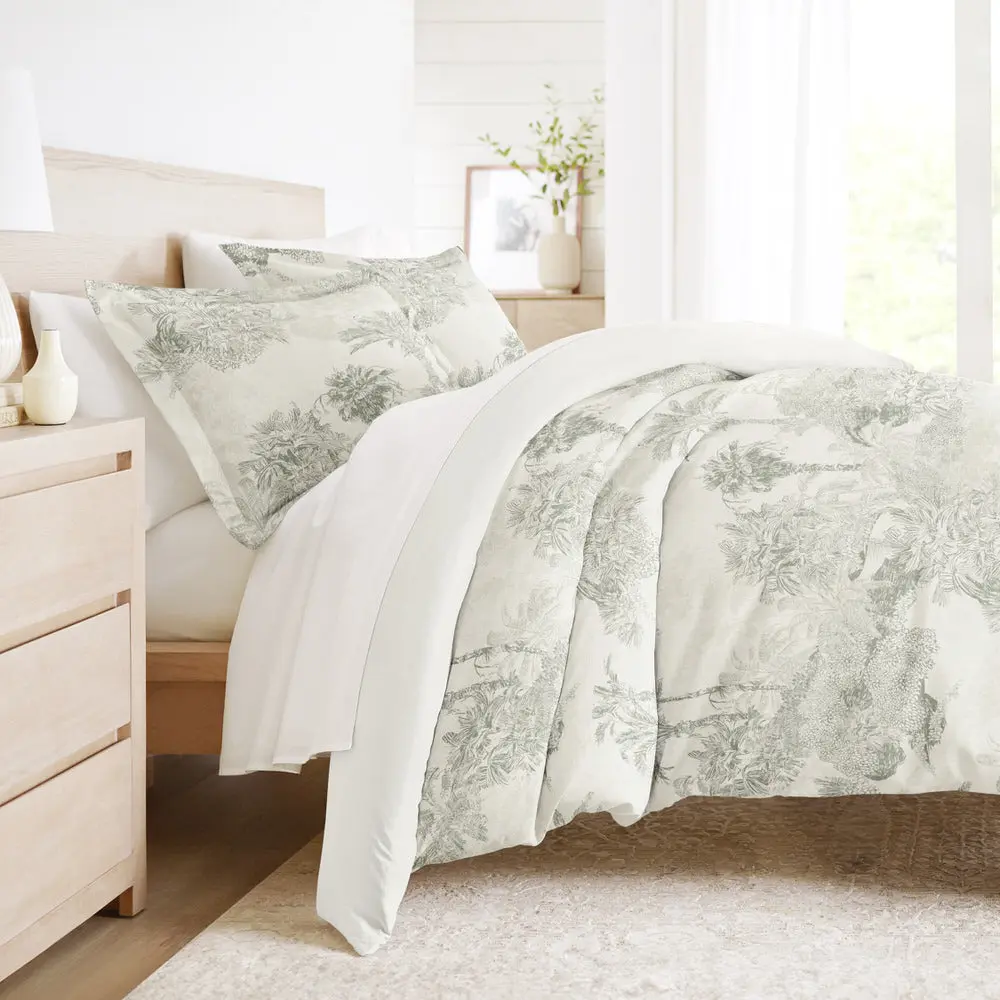 The greens on this comforter set are so beautiful, I am so so pleased with my choice! The comforter itself has that crispy crinkle to it that I just love. It's soft and breathable, perfect for summer, and provides the perfect weight. I'll never shop for bedding anywhere but Linen & Hutch!