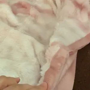 Fuzzy as promised and so cozy! The light pink and white combo is my fave!