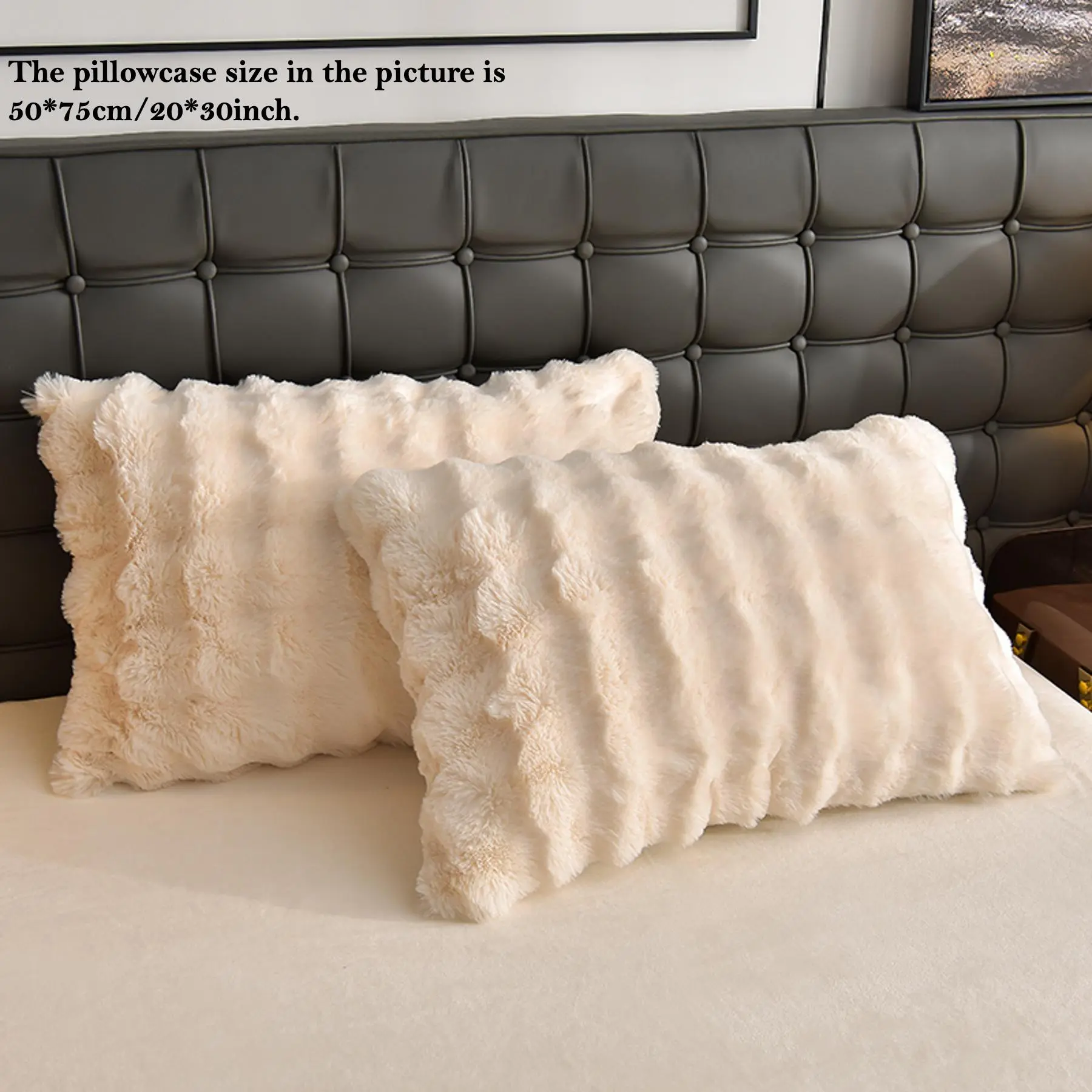 So you do have to buy the stuffing to stuff the blanket to give it the fluffy effect. But it is super soft and the color is beautiful. Once the blanket is filled with the stuffing, it looks exactly as it is advertised.