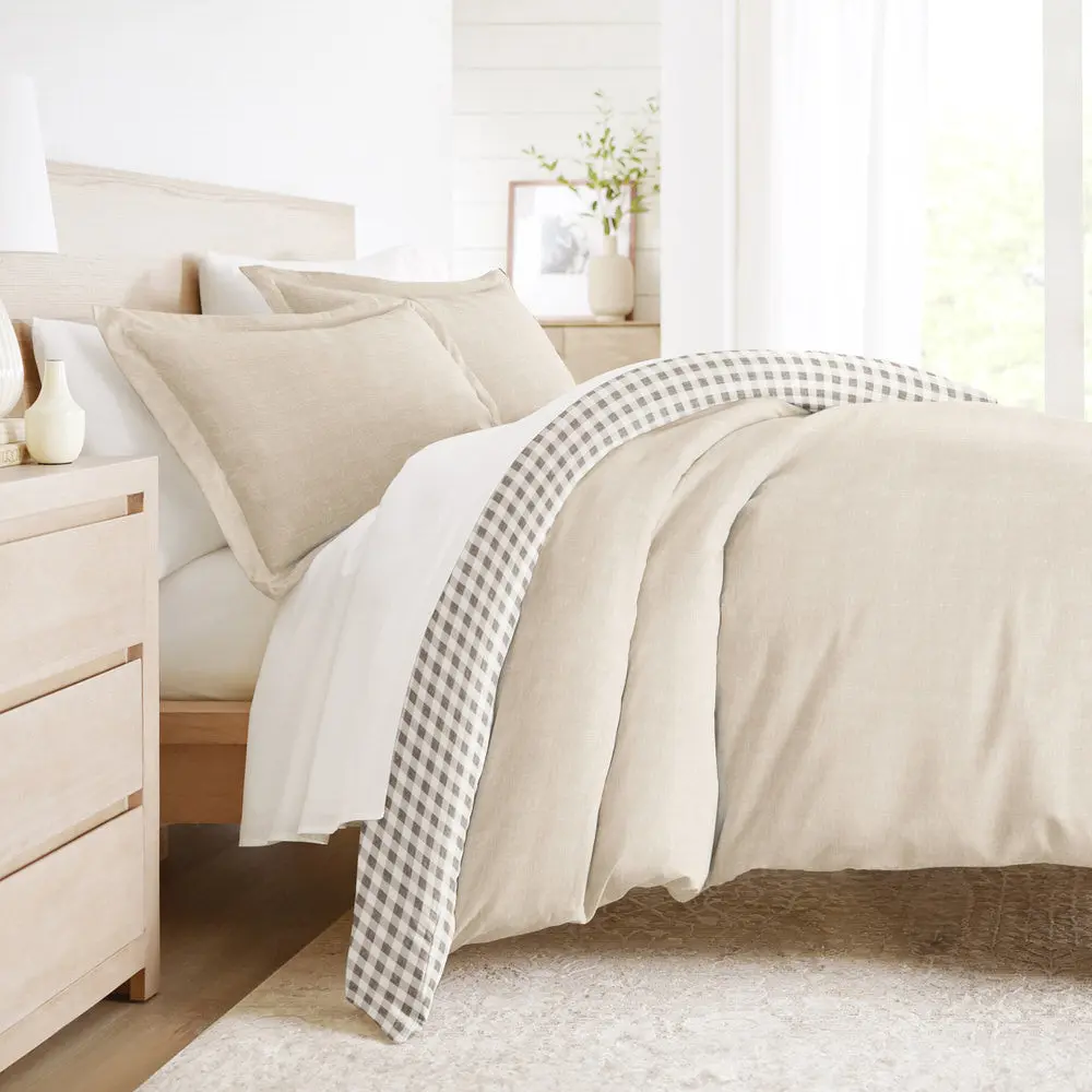 King/Cal King, Natural, Gingham Check