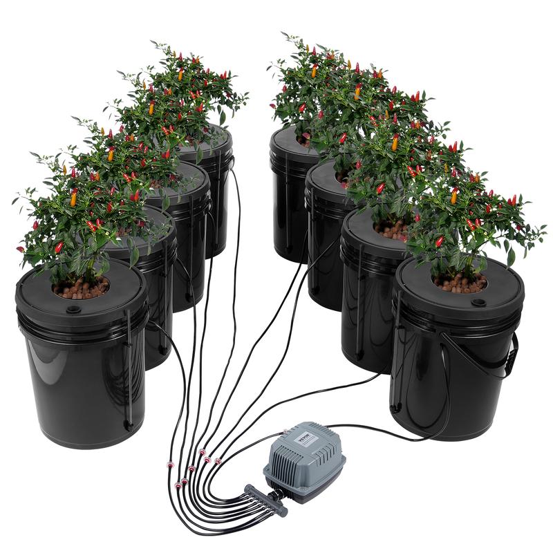 5. VEVOR DWC Hydroponic System, 5 Gallon 8 Buckets, Deep Water Culture Growing Bucket, Hydroponics Grow Kit with Pump, Air Stone and Water Level Device, for Indoor/Outdoor Leafy Vegetables