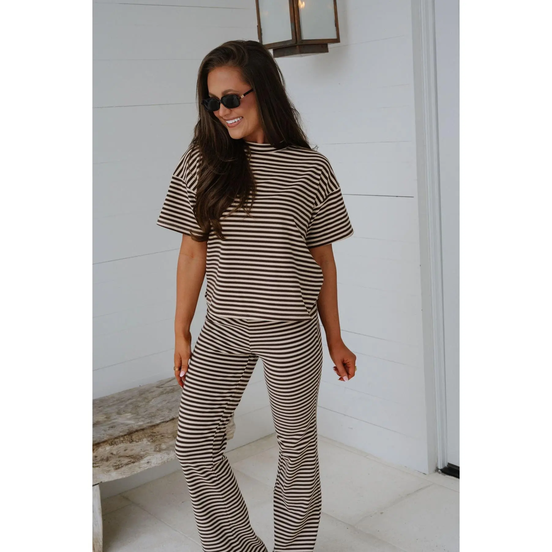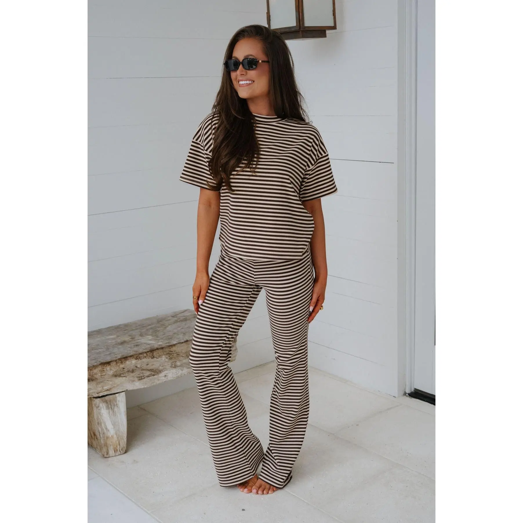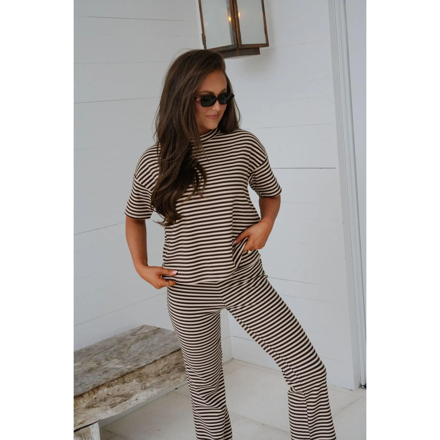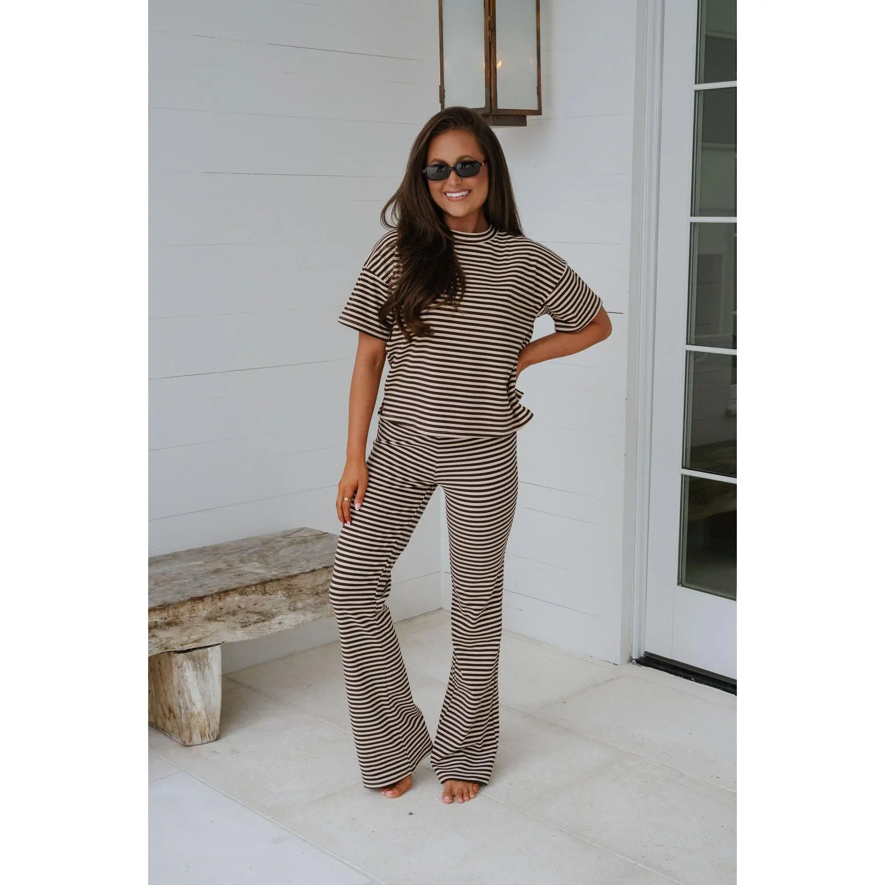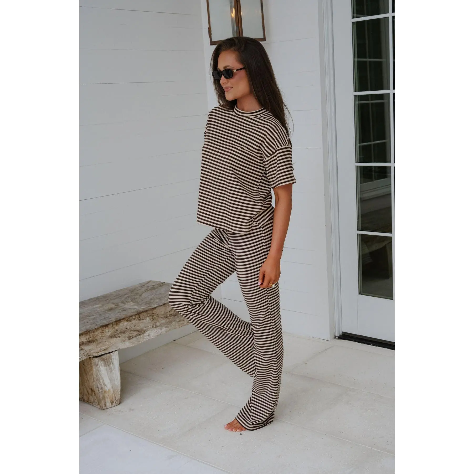 Dylan Striped Pants Set-Chocolate