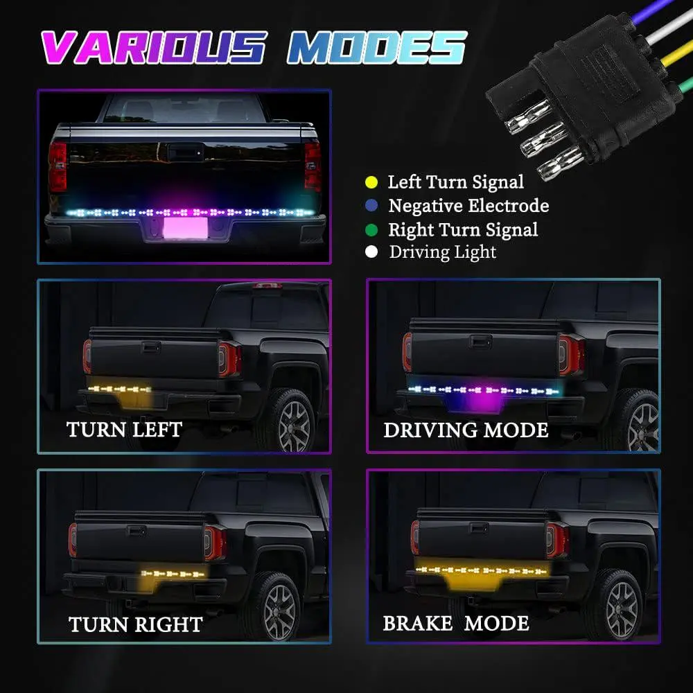 5. Universal Fit: This led tailgate light is perfect for 12V most pickup trucks, We will test it before shipping. It can be easily installed on any truck with at least 60 inch tailgate. Applicable to 12V DC power supply vehicles, including fit for Ford, Chevrolet, GMC, Dodge, and most cars, pickup, trucks, SUV, RV, Van, trailers, etc. Add a stylish overall look and safety to your vehicle.