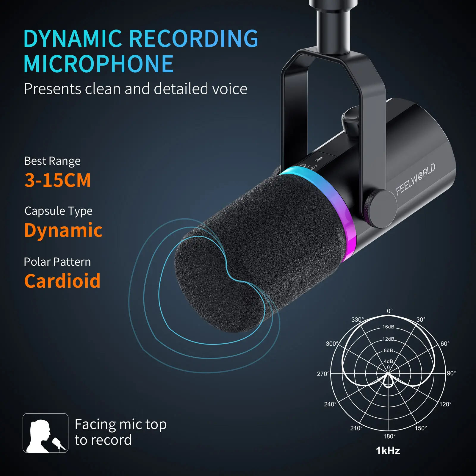 Ever get frustrated by complicated mic setups during your live streams or podcasts? The FEELWORLD PM1 makes it easy and fun. This dynamic microphone features both XLR and USB-C connections, perfect for PC, laptops, and professional gear. Its cardioid pattern captures your voice clearly while minimizing background noise, ideal for gaming, streaming, or voice-over work. The built-in RGB light ring isn’t just for show—it changes color to indicate mute status and volume levels, adding a sleek touch to your setup. Plus, the handy mute button lets you avoid awkward moments instantly. Real-time monitoring through the 3.5mm headphone jack means no annoying audio delays. The package includes a sturdy boom arm, U-shape bracket, USB and XLR cables, so you’re ready to record right out of the box. Whether you’re streaming late-night gameplay or recording a podcast episode, this mic delivers professional sound with user-friendly controls. Grab your PM1 and start sounding like a pro today!