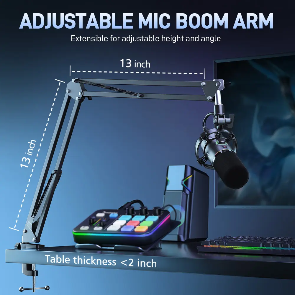 Ⅵ.. 180° adjustable mic boom arm, easy to install and use smoothly.