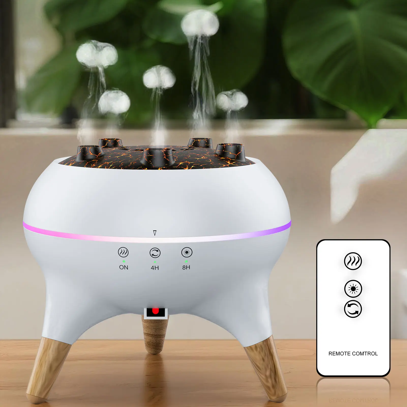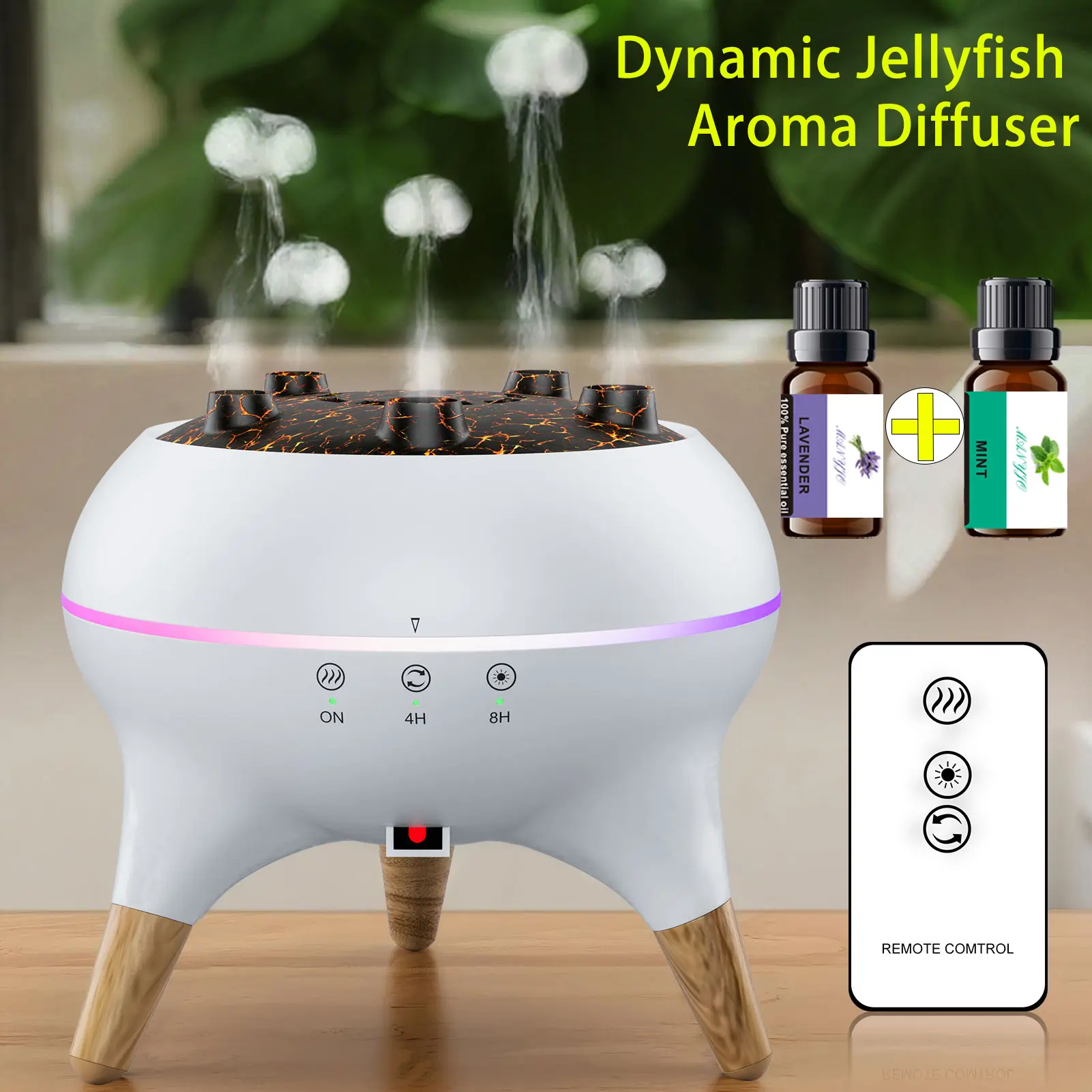 Dynamic Multi-Spray Aromatherapy Machine Desktop Flame Humidifier Household Large Fog Colorful Light with Remote Control Jellyfish Diffuser