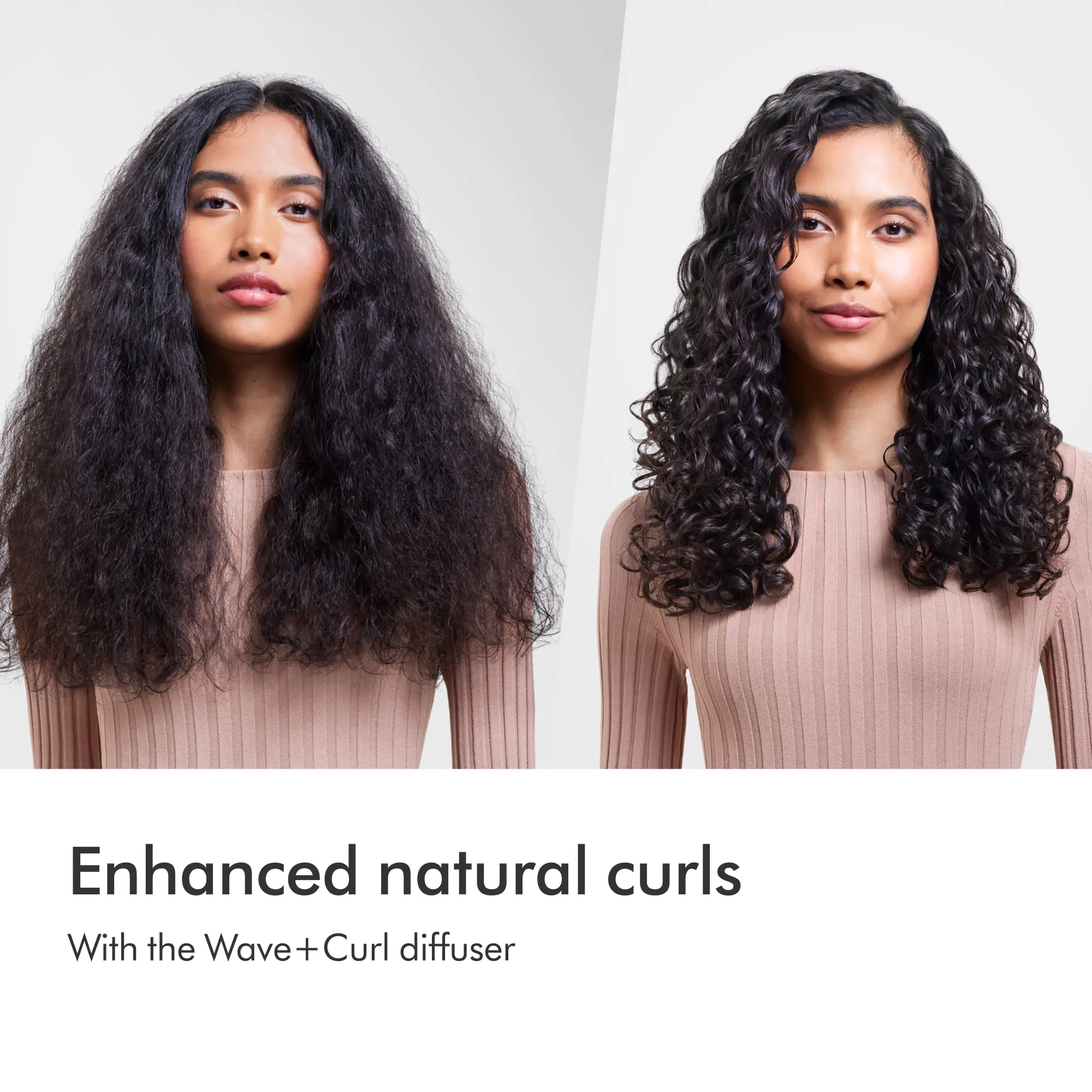·Wave+Curl diffuser is 2-in-1 diffuser: Dome mode draws air into the dome and infuses it through the hair to enhance natural waves or curls for a more defined finish.⁴ Diffuse mode gently disperses airflow through longer prongs for voluminous curls and coils.