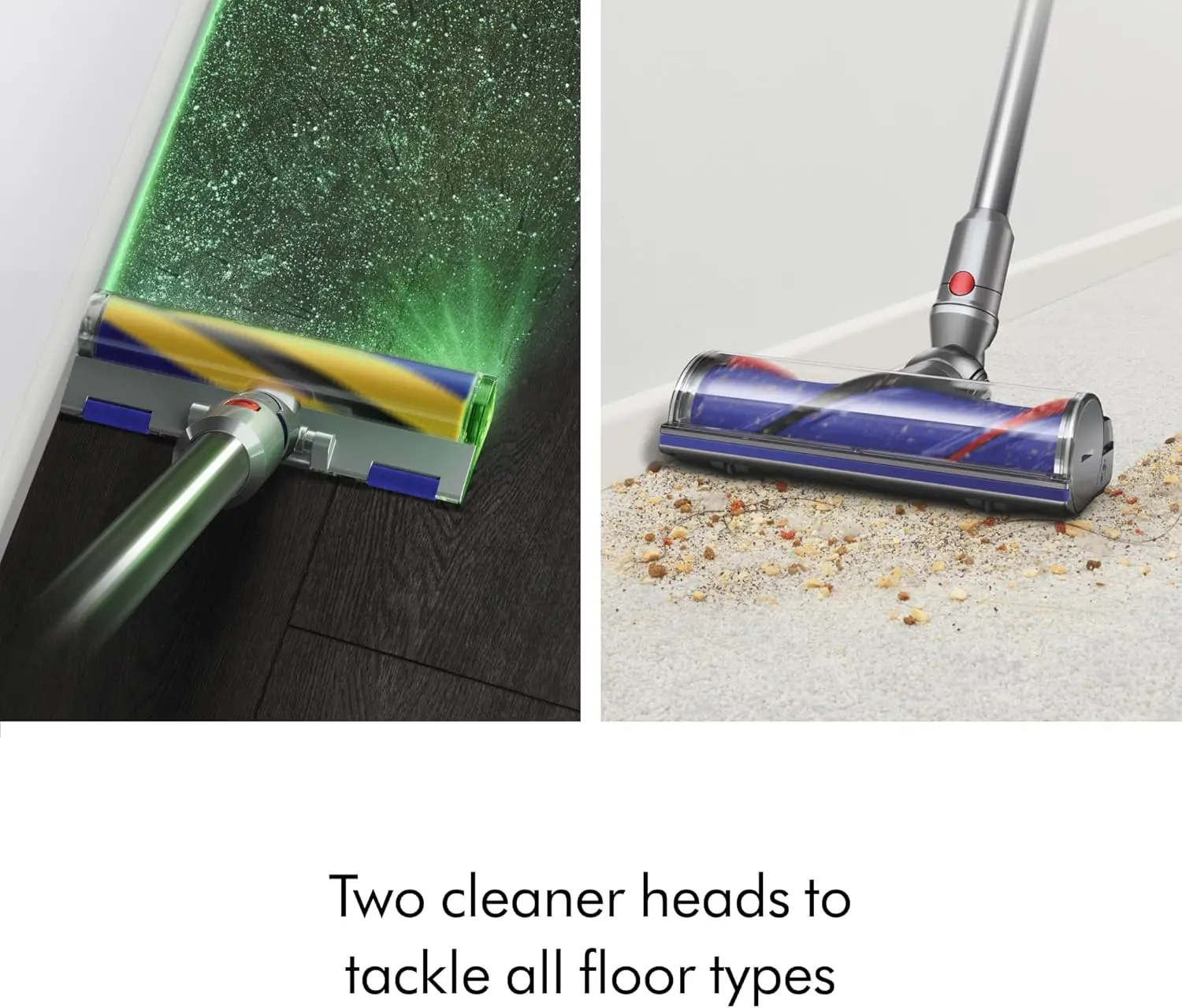 ·Laser Slim Fluffy Cleaner Head: Ideal for hard floors with laser illumination.