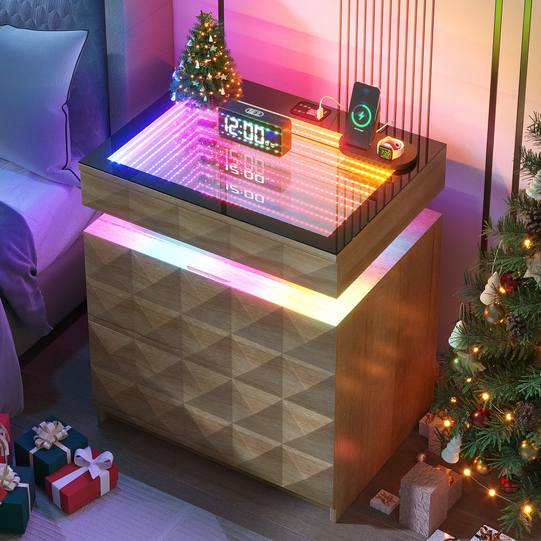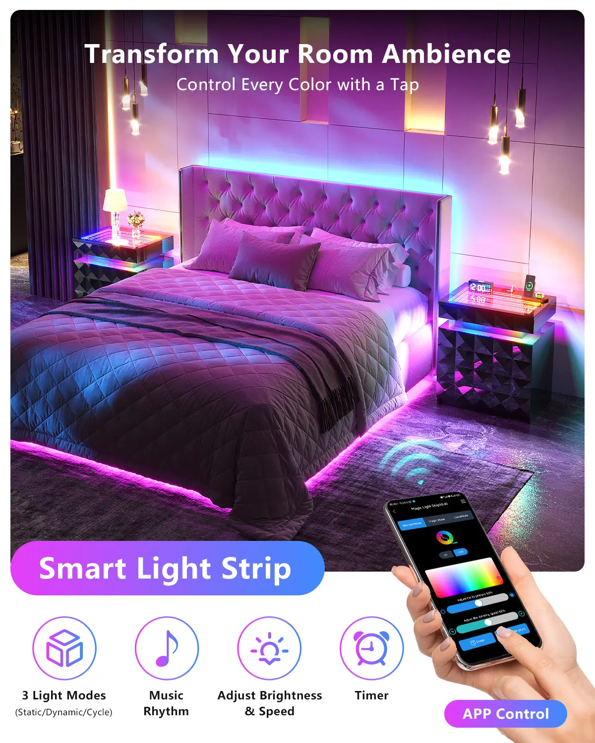 ·Smart RGB Lighting with App Control: LED bedside table with customizable RGB tunnel lighting through an easy-to-use mobile app. Offers static, dynamic, loop, and mic-sync modes with adjustable speed. Creates the perfect lighting mood for reading, relaxing, gaming, or unwinding before bed.
