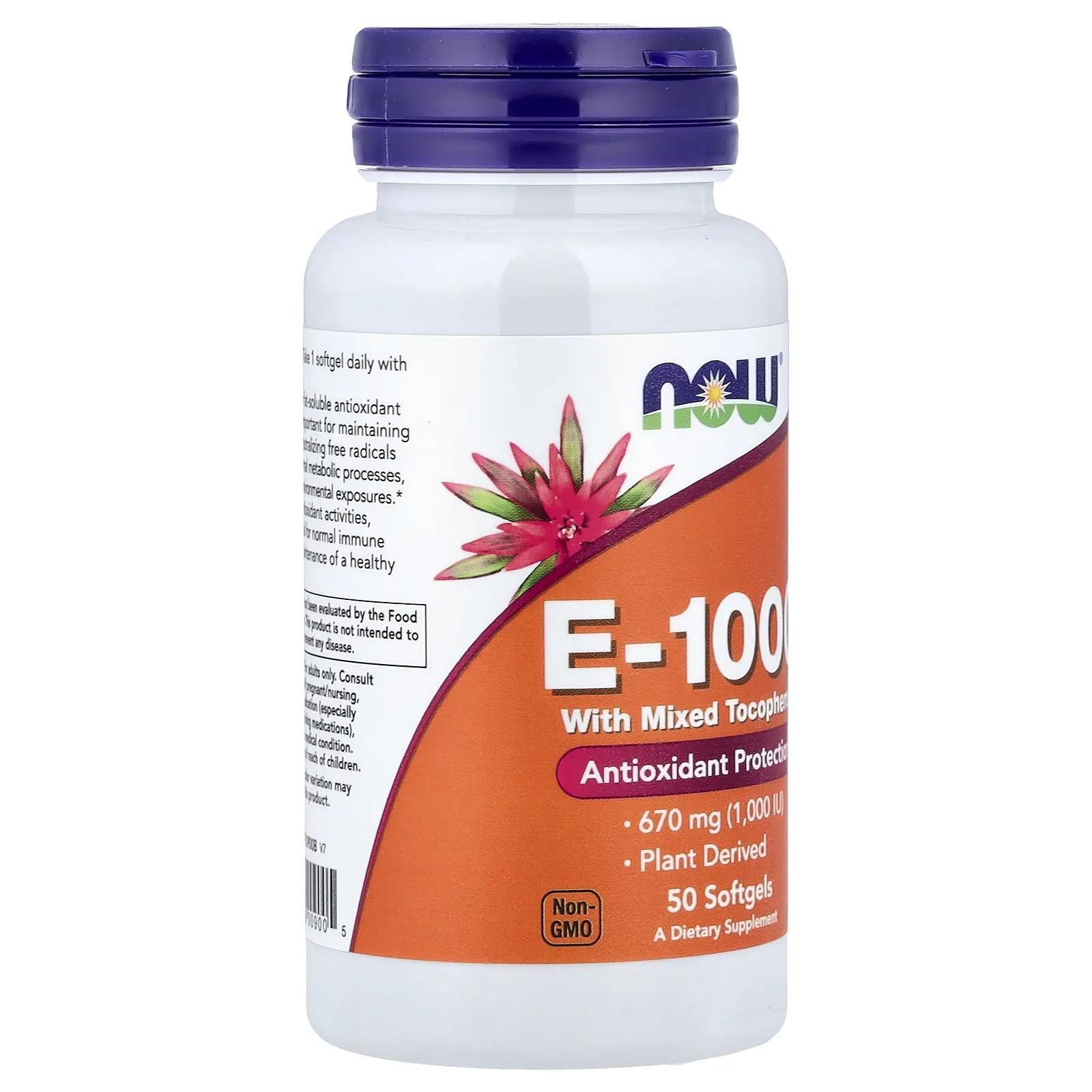 NOW Foods E-1000 with Mixed Tocopherols, 670 mg (1,000 IU), 50 Softgels