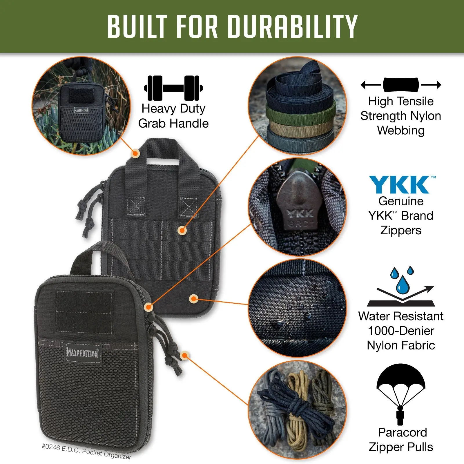 ·MAXPEDITION's nylon fabric is treated with Dupont Teflon for superb water and grime resistance.