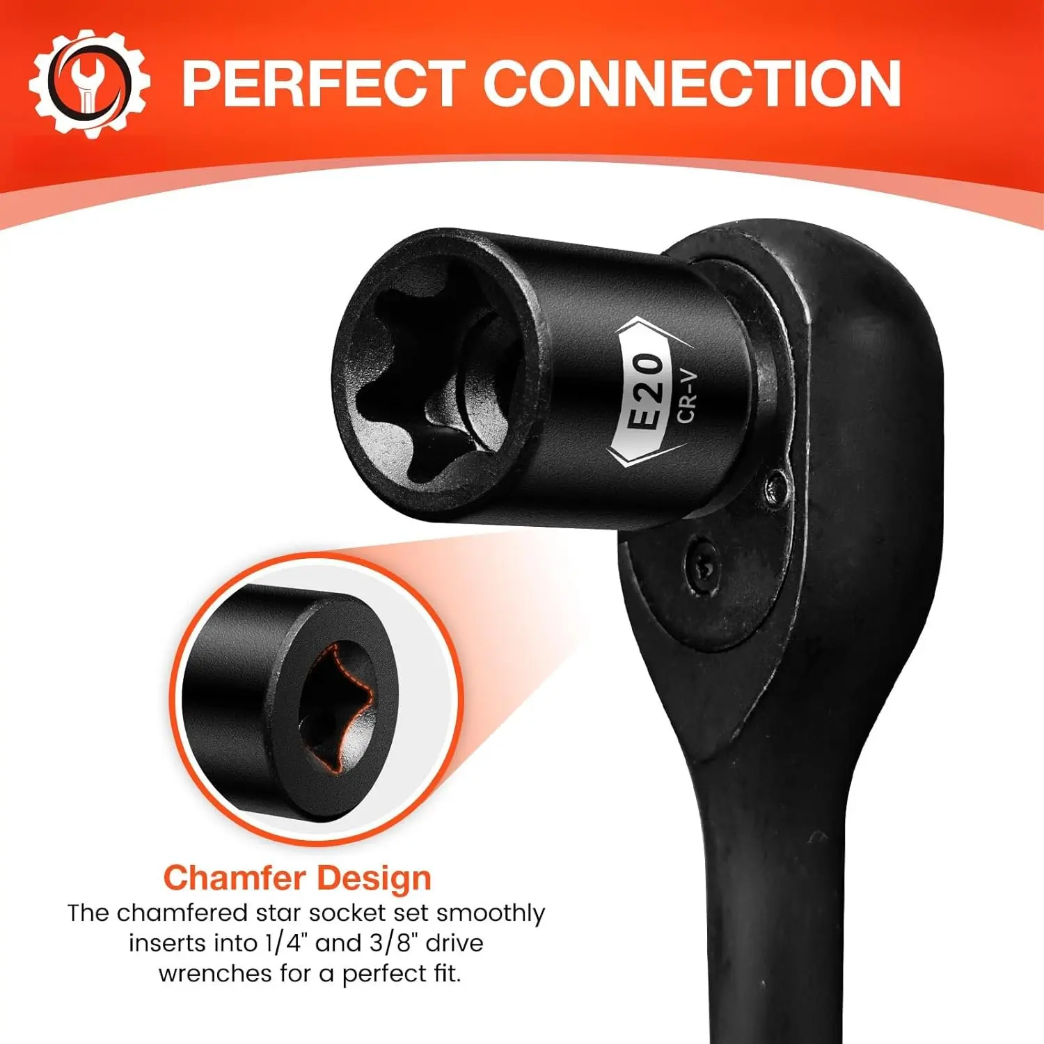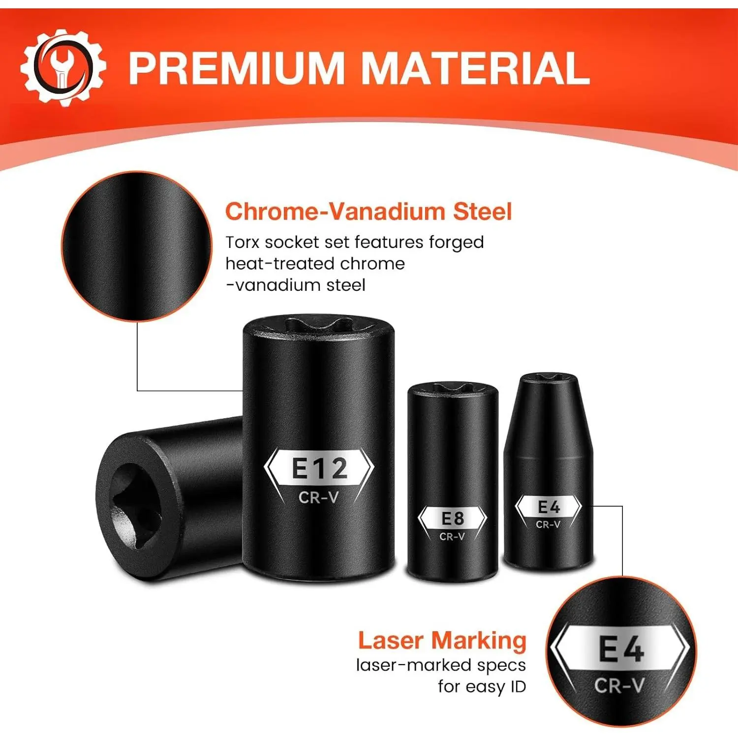 PROFESSIONAL EXTERNAL SOCKET: E-torx sockets are mainly for external plum . Unlike ordinary hex sockets, the hexagonal design can cam dislocation and improve torque transmission in high- applications. And the chamfered end can smoothly insert the fastener for a fit experience