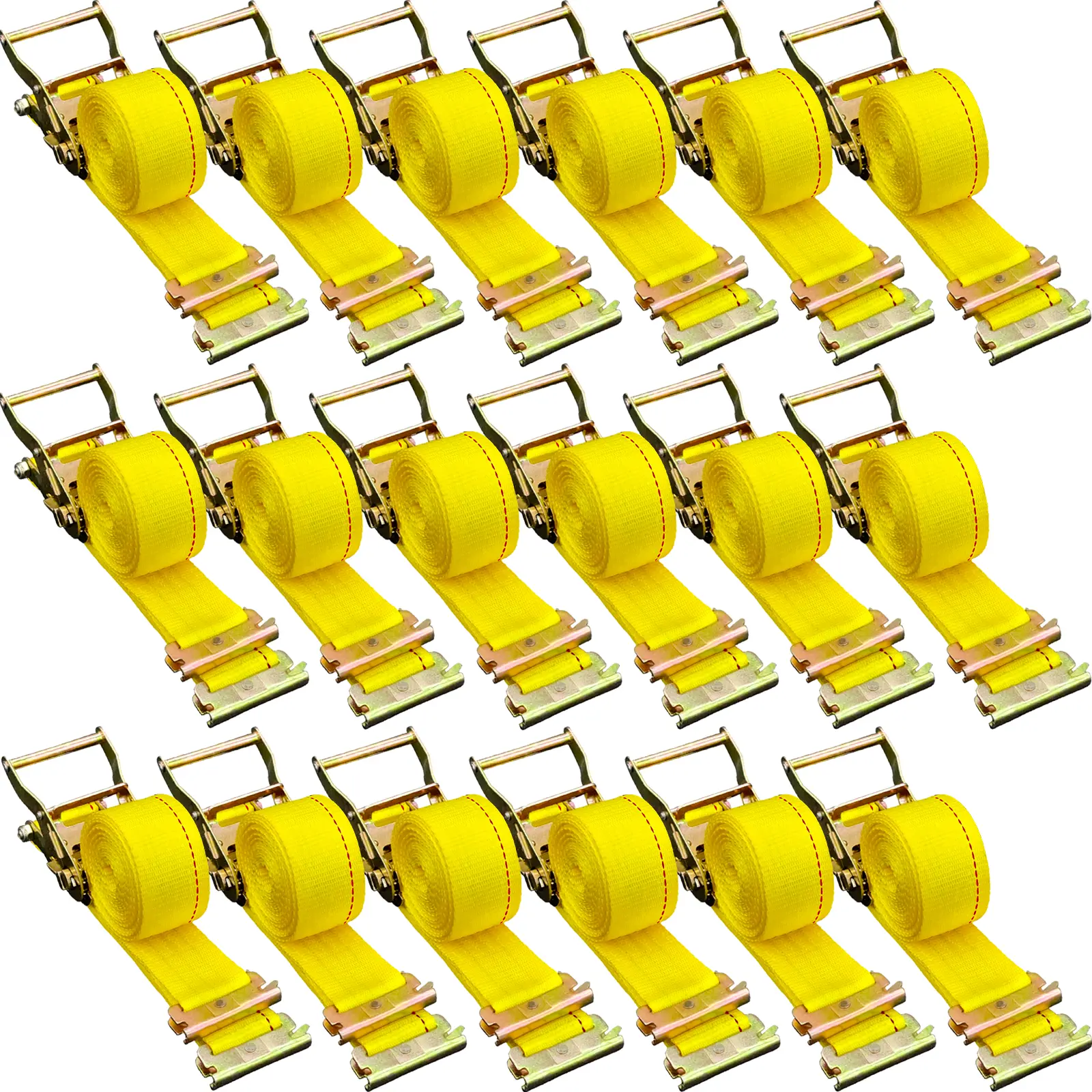 • Perfect for E-Tracks: Each E-track strap has, at one end, a spring attachment that clicks into any slot on your E-track rails. So, these straps easily secure cargo loads in your box truck, cargo van, pickup bed, or warehouse with the convenient and versatile E-track system.