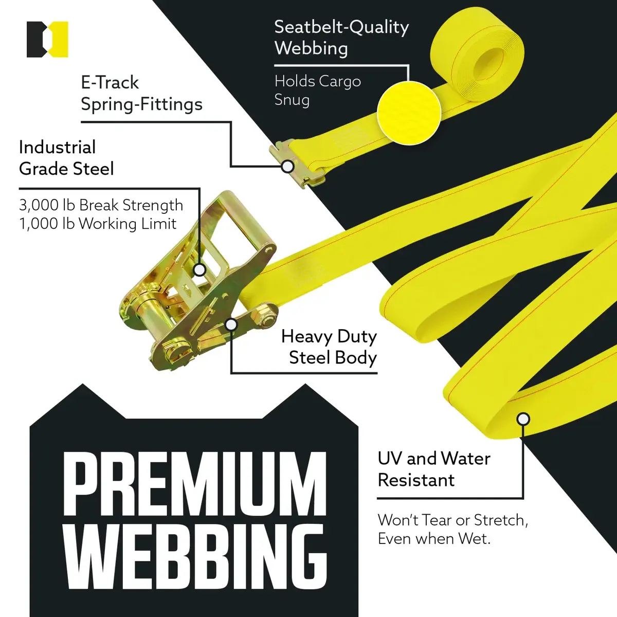 DC Cargo 4 Pack of 2 Inch x 12 Feet Yellow E-Track Ratchet Straps, Retractable