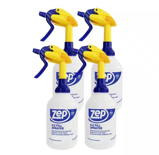 5. ZEP 32 oz. E-Z Fill Spray Bottle, Commercial Grade High Output Sprayer, Wide Mouth for Easy Mixing, Adjustable Nozzle from Mist to 30 ft Stream, Durable for Professional and Home Use, Includes ID Labels and Graduated Scale.