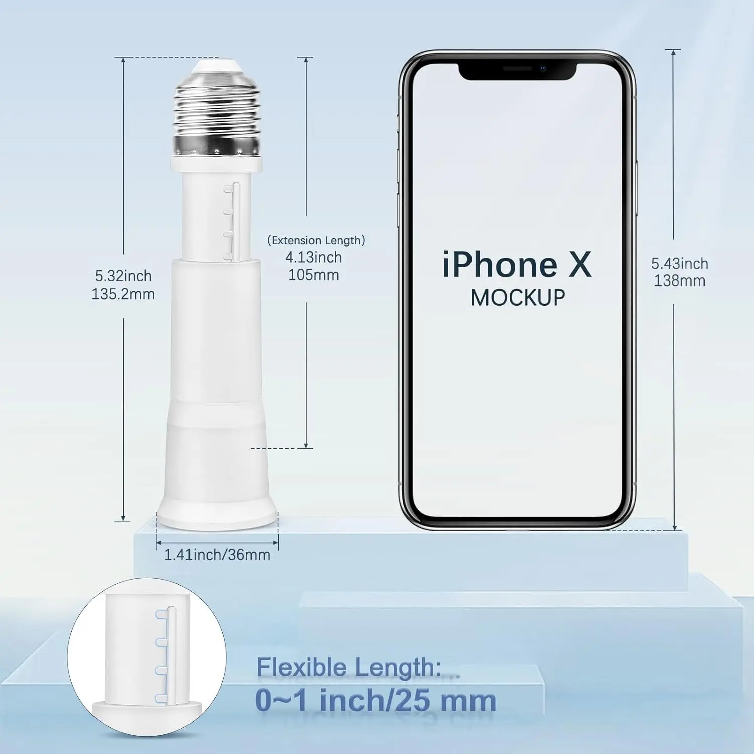E26 2.5cm flexible light socket extender. Extended length: 80mm-105mm. Total length: 110mm-135mm. Keep length adjustable maximum weight capacity: 100 g.