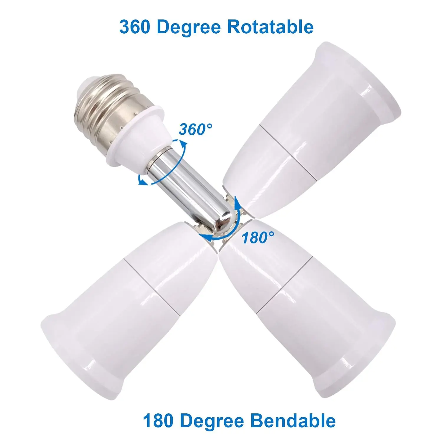 ·This E26/E27 Socket Extender with flexible neck can be Adjustable neck and head vertically angles up to 90 degrees.Head can also rotate 360 degrees in either direction Horizontally.
