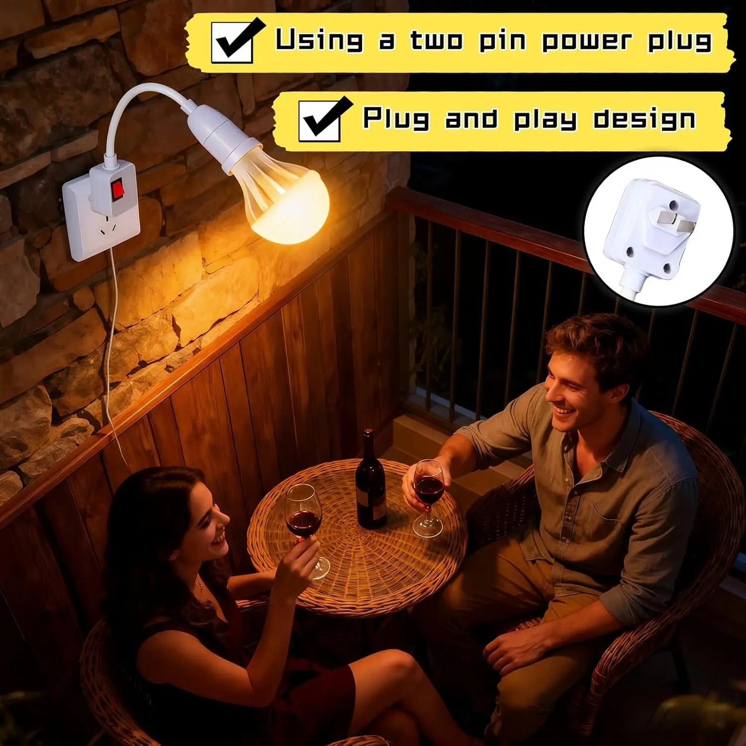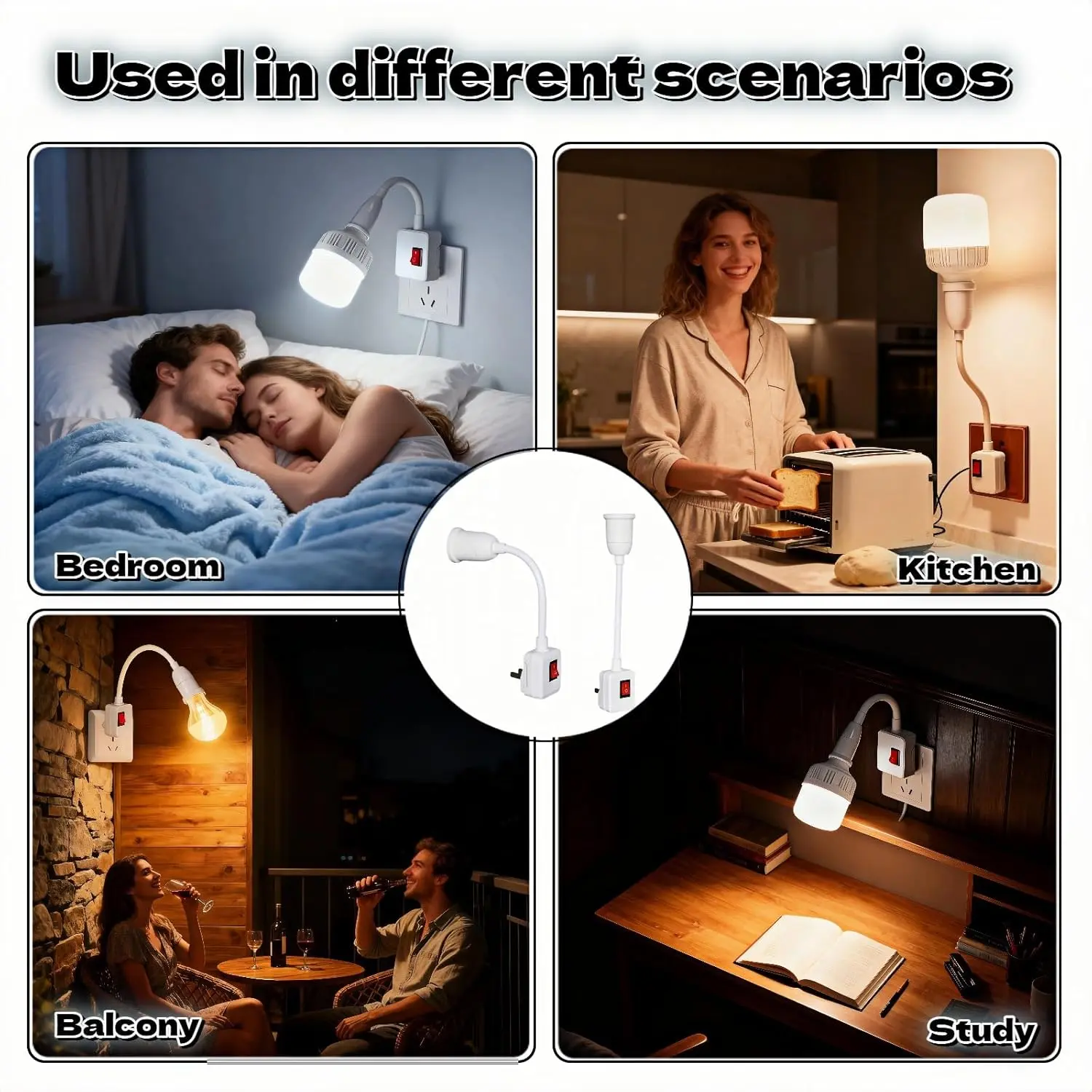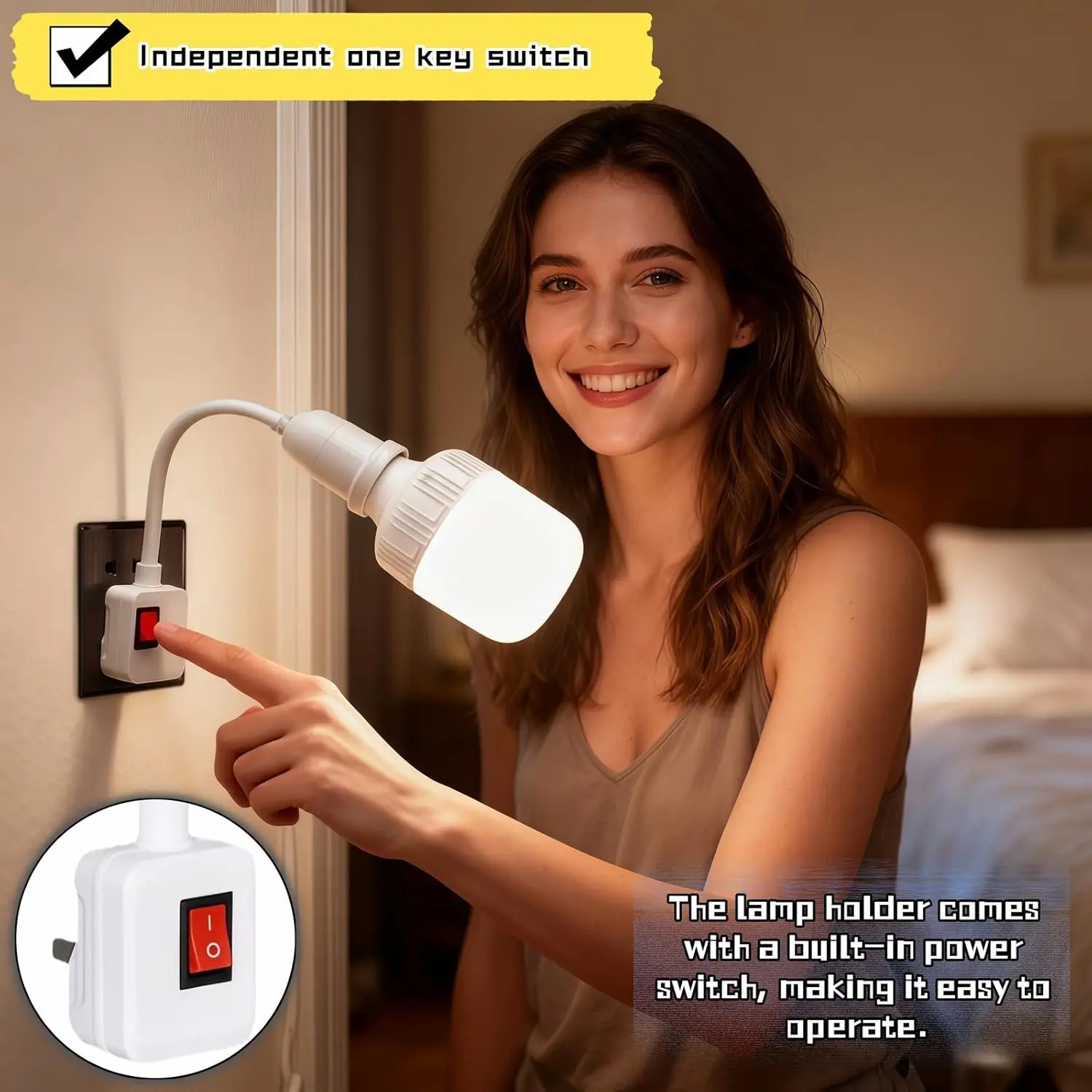 ·💡Tool-Free, Plug-and-Play Installation—No Wiring Needed Skip the hassle of complex setups. Simply plug the socket into any wall outlet or power strip, insert your E26/E27 bulb, and flip the switch to light up instantly. Perfect for renters, DIYers, or anyone needing quick, temporary lighting solutions without drilling or electrical work.