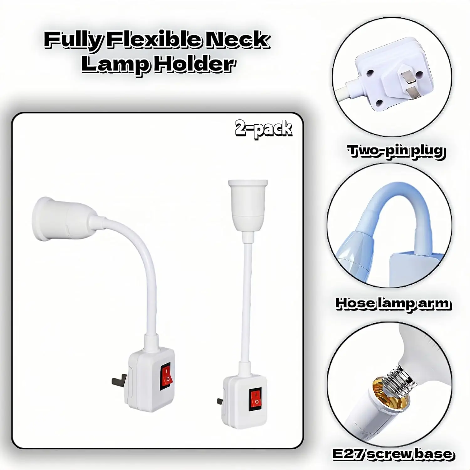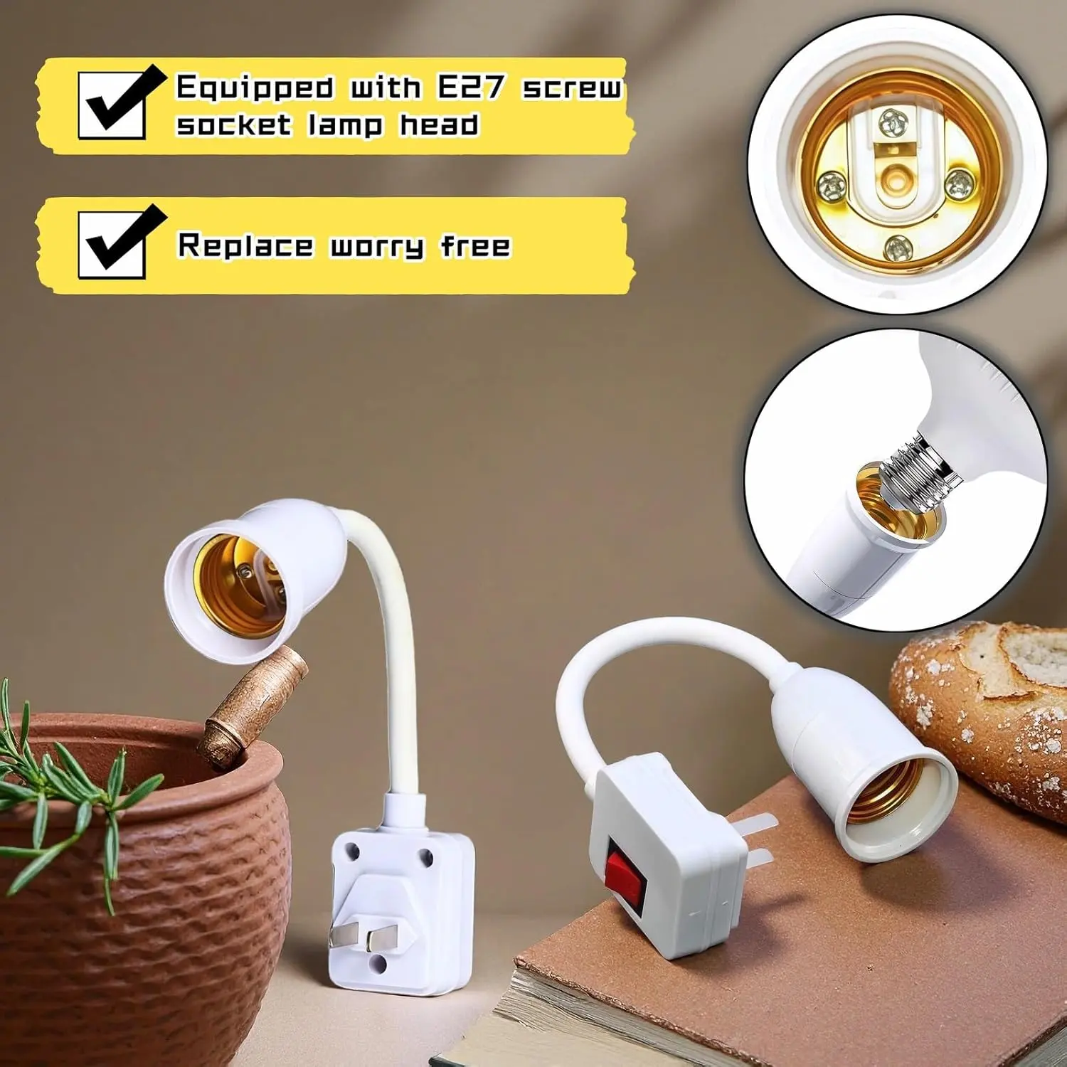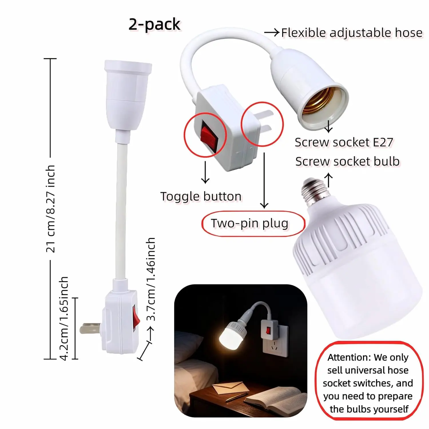 ·Transform any standard outlet into a versatile lighting solution with this 2-pack of E26/E27 socket extensions. Featuring an 11cm Fully Flexible Neck design, these adapters offer 360-degree adjustability to direct light exactly where you need it. Each unit includes a convenient on/off switch and requires no complex wiring - simply plug in and attach your preferred bulb. The durable construction supports bulbs up to 60W (standard) or 30W (halogen), with a recommended maximum bulb weight of 200g/7oz. Perfect for creating task lighting in bedrooms, garages, closets, or reading nooks. The sturdy copper internal connections and flame-retardant PC housing ensure reliable performance, while the adjustable neck maintains its position whether straight or bent. These socket adapters work with standard E26/E27 bulbs and can be used for LED lights, night lights, reading lamps, or bulb cameras. Compatible with 100-220V power sources, they're an ideal solution for adding targeted lighting in space-constrained areas.