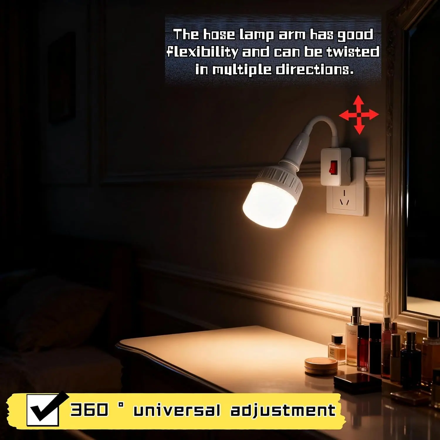 ·💡360° Flexible Rotation & Stable Pivot for Perfect Lighting Angles Equipped with an 11cm fully flexible neck made of reinforced metal core, this light socket rotates 360° and pivots to any angle—easily aim light where you need it most. The sturdy design stays firmly in place even with heavier bulbs (up to 7oz), eliminating wobbling for consistent, targeted illumination. Ideal for tight spaces like closets, under cabinets, or bedside reading nooks.