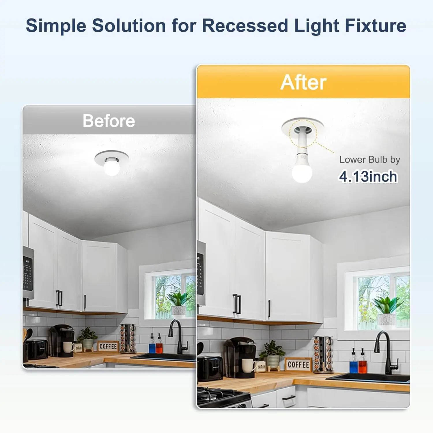 This CE certificated extender can lower your bulbs further in recessed fixture, allowing light to disperse in 360 degrees and making your room brighter.