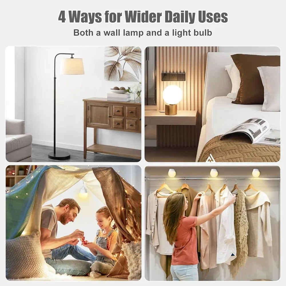 ·Easy-to-Hang Design: With 3M sticky adhesive and detachable magnetic base, this light bulb is versatile for various locations.