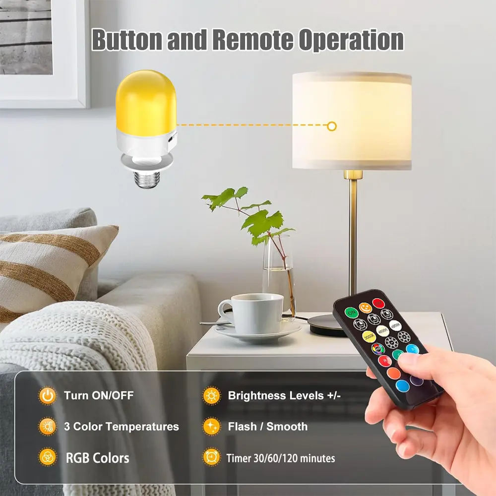 Conclusion:The E26 Rechargeable LED Light Bulb is a versatile, dimmable, and energy-efficient lighting solution with a 2000mAh battery backup. It offers customizable lighting options and is suitable for both indoor and outdoor use. The included remote control and timer make it easy to operate and schedule lighting.
