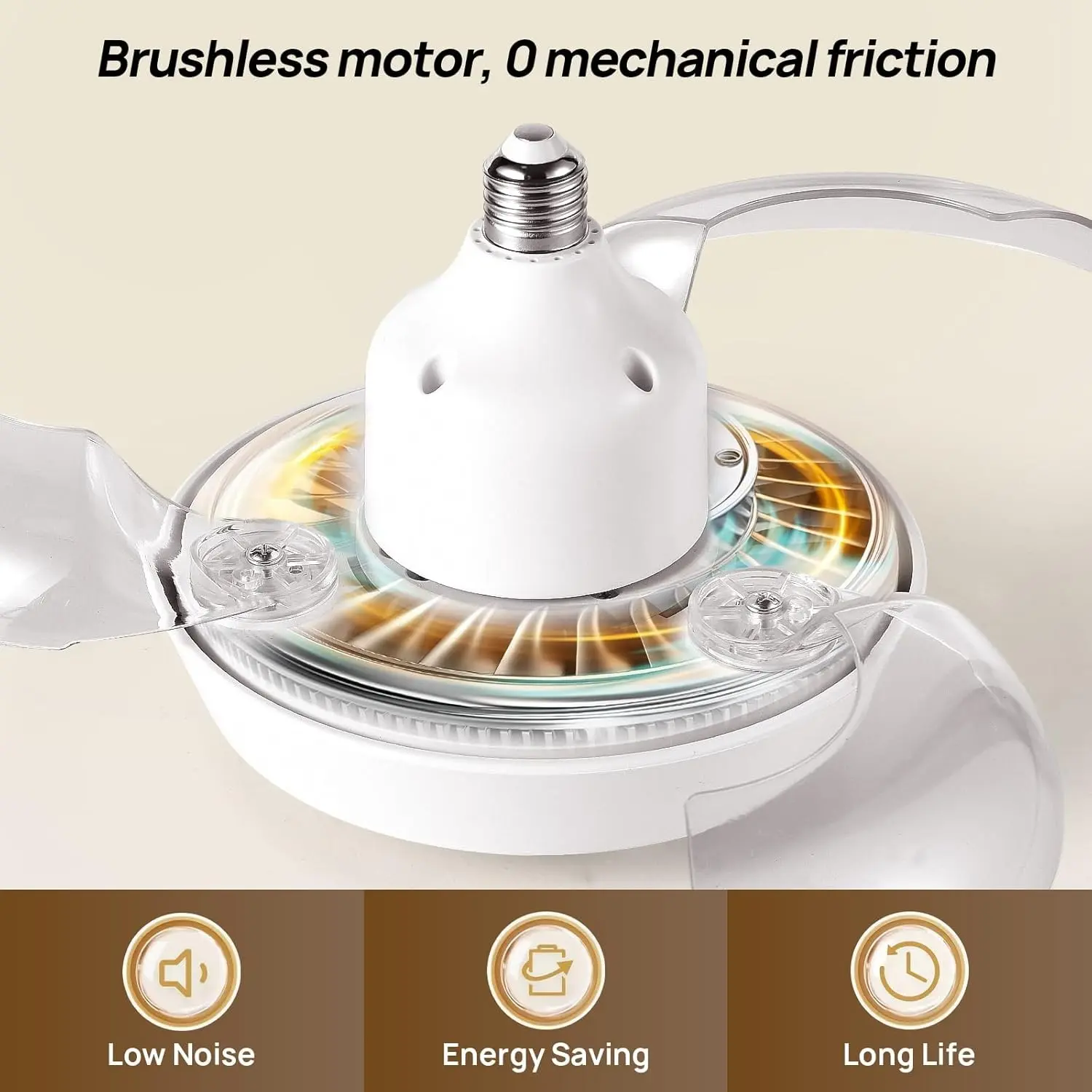 5. Socket Fan Light with Remote Control, E27 Socket Retractable Ceiling Fan Light, Ultra-Quiet Dc Motor, Dimmable LED, Flush MounSocket Fan Light E27 Fan Light Retractable Ceiling Fan Light Invisible Blades Ultra Quiet DC Motor Dimmable LED Flush Mountt