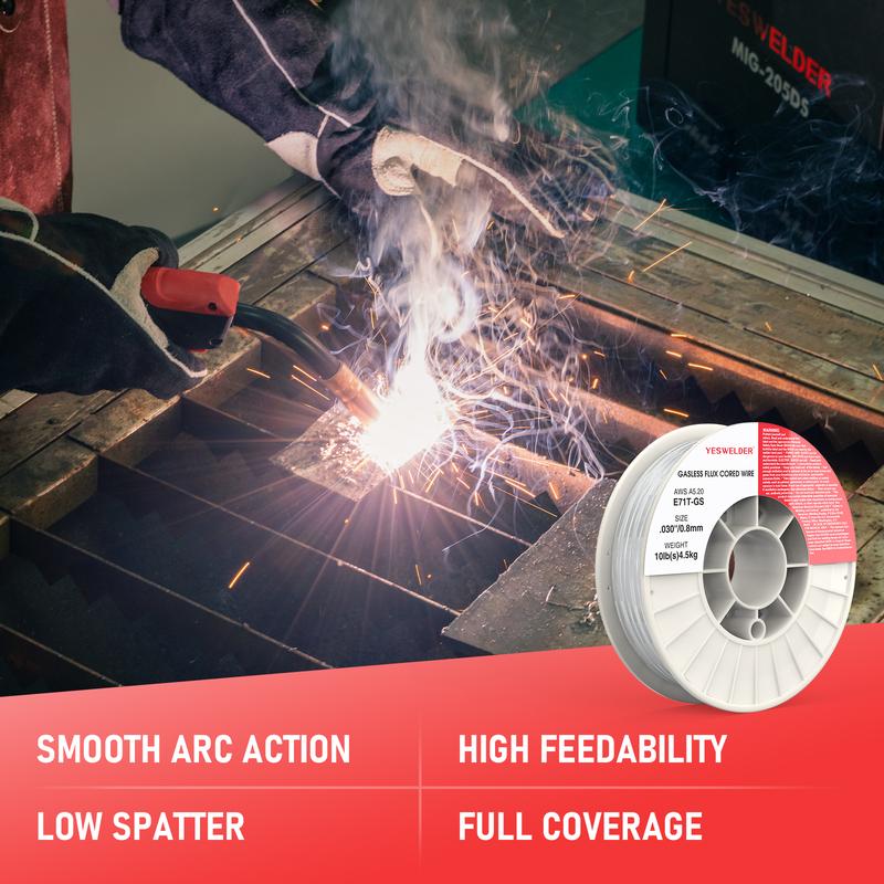 ·E71T-GS flux core MIG welding wire is a self-shielded wire, as it creates its own protective gas as you weld, eliminating the need for an external gas tank.