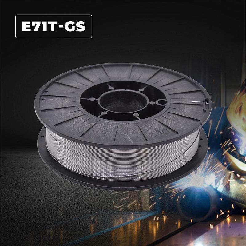 ·E71T-GS produces smooth arc action, no porosity, good appearance of the weld path, easy to weld. Very nice for outside condition and home DIY use.
