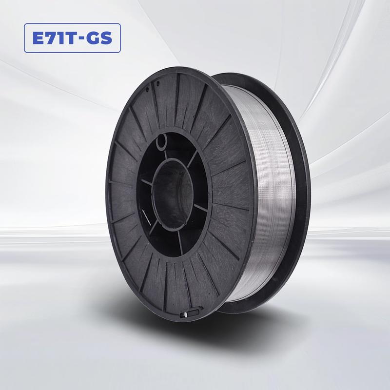 ·E71T-GS produces smooth arc action, no porosity, good appearance of the weld path, easy to weld. Very nice for outside condition and home DIY use.