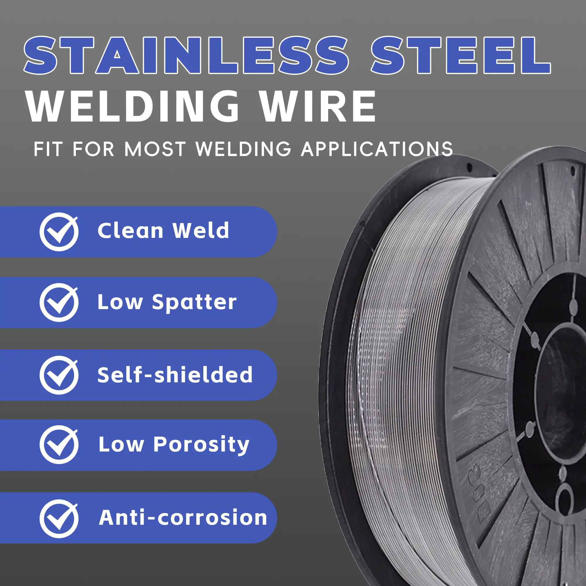 ·Supports high current arc penetration, strong droplet transition, small splash and the forming is beautiful.. Self-shielded. No welding protection gases needed. Fits for Multi-pass fillet and lap welding.