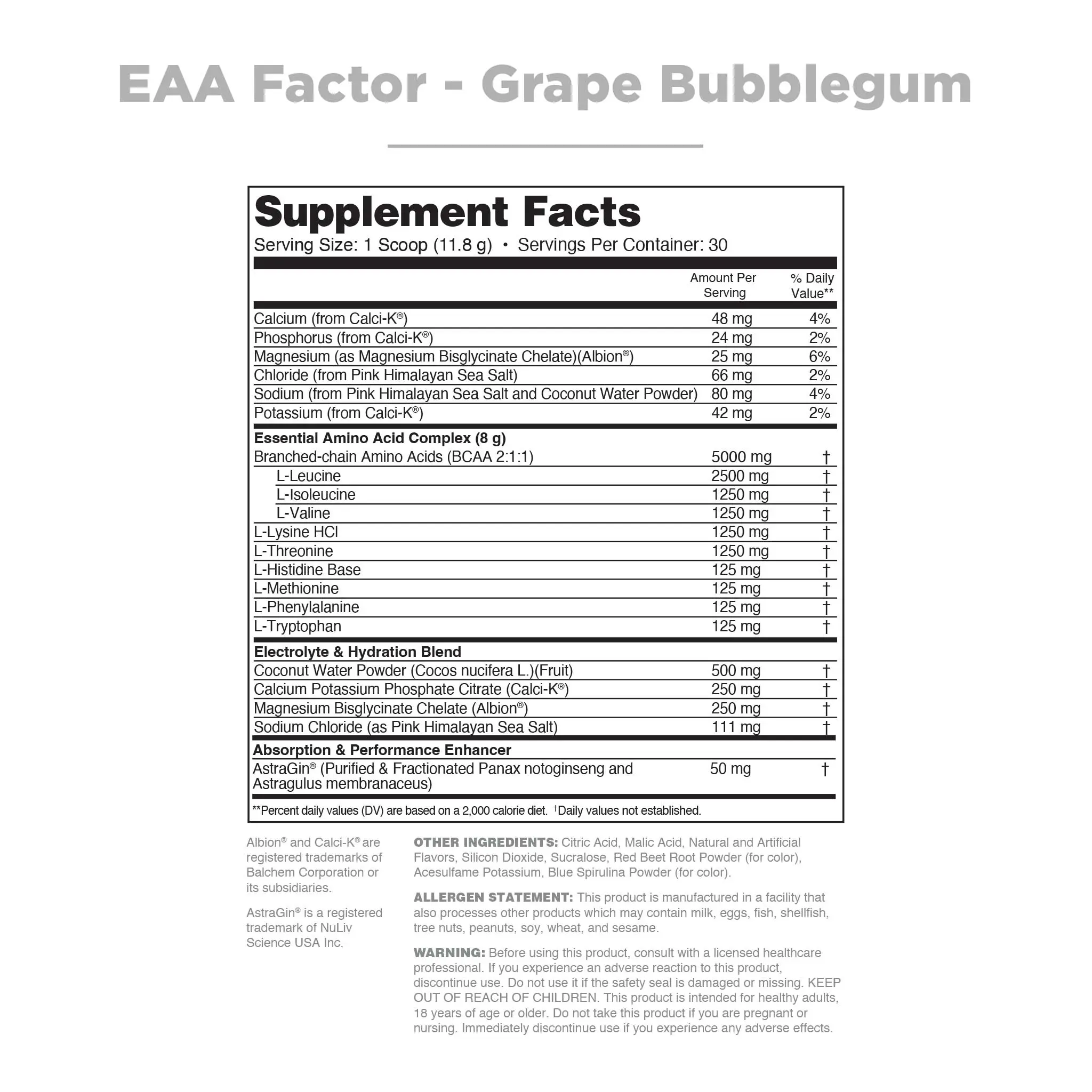 BCAAs alone aren’t enough. EAA Factor™ delivers the full EAA spectrum, a clinical hydration stack, and AstraGin® for up-to-25 % better absorption—so every sip works harder.*