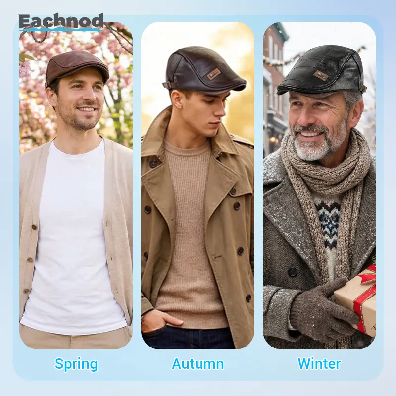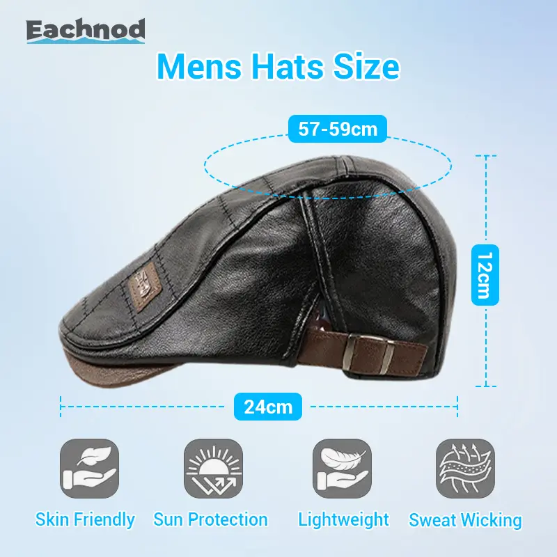 Upgrade your look with this fashionable leather beret. Made from high-quality leather, it merges style with warmth. Ideal for all seasons, this unisex hat fits most adults with an adjustable circumference. Perfect for gifting, it's great for family and friends during holidays. Stay warm and stylish in autumn, spring, and winter.