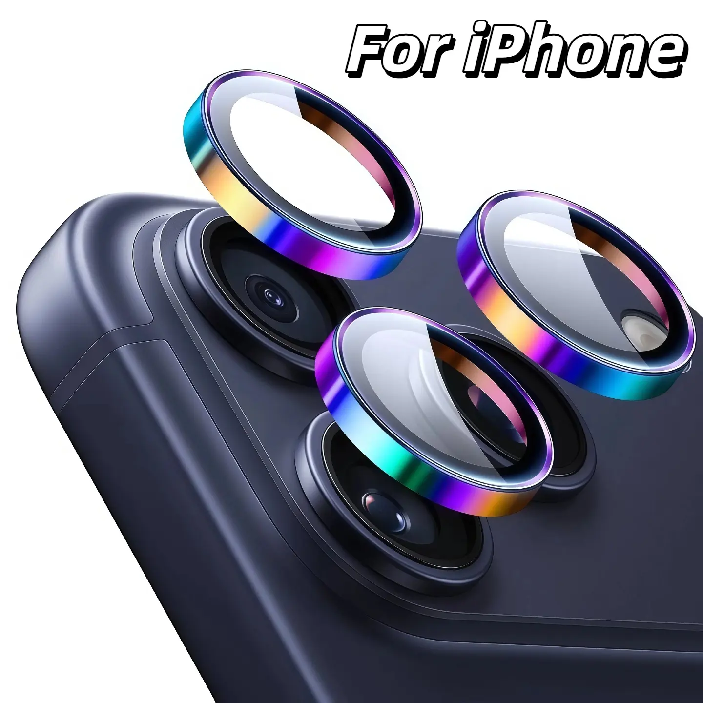 Eagle Eye Mobile Phone Lens Ring for Apple iPhone Air/17/16/15/14/13 Series, Full Coverage Camera Protection, Metal Lens Circle + 9h Tempered Glass Film