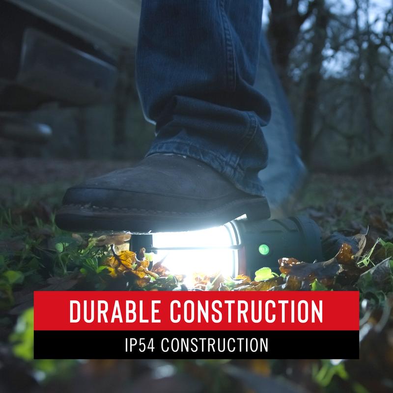 Light your way through the night. The Coast EAL18 Emergency Area Light combines the best of recreation-style lantern lighting with an emergency mode for signaling under duress. Featuring a 4-mode smart switch, this high-output area light fills the surroundings with up to 460 lumens of multi-mode light in two colors—white and red. For emergency situations, the flashing red option catches the eye quickly in a call for help, and a 50-hour run time means you have 6 nights of light on one set of batteries. Stand the light on its base, carry it by the swinging handle, or hang it from the easy-stow hook integrated into the handle. Constructed of high-strength nylon and polycarbonate with a stainless steel outer cage, the impact-resistant EAL18 makes dark nights brighter, safer, and more fun.