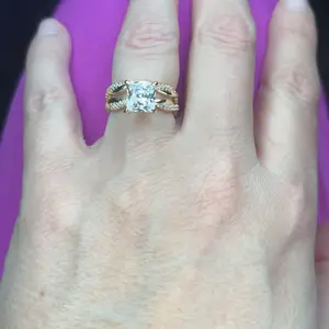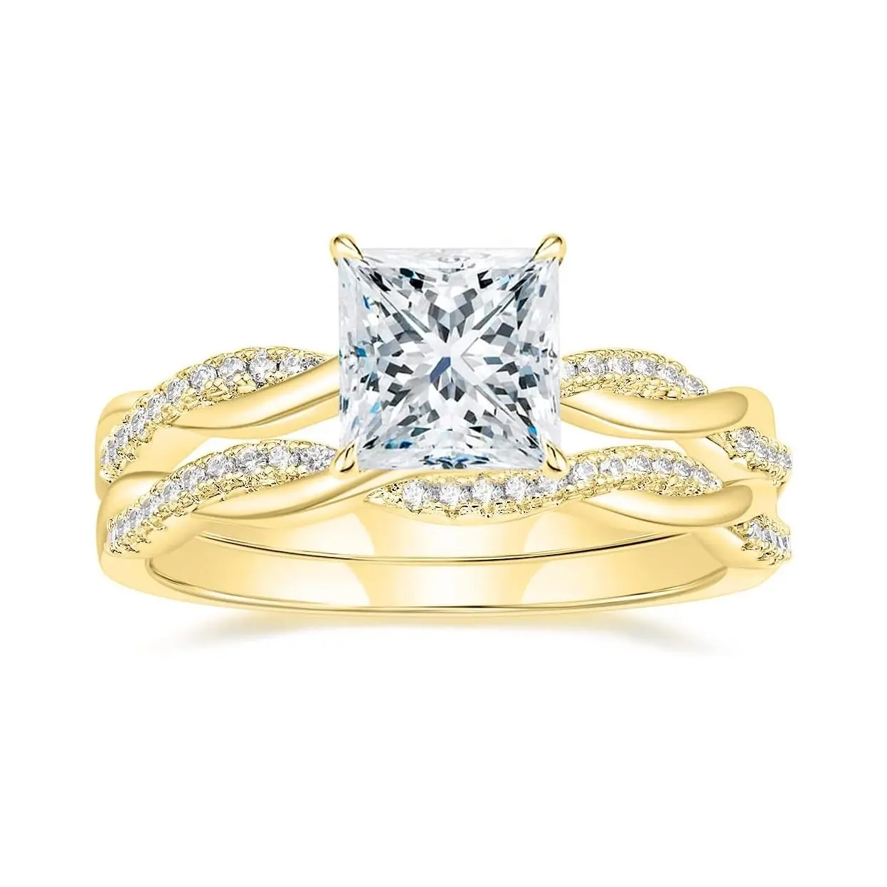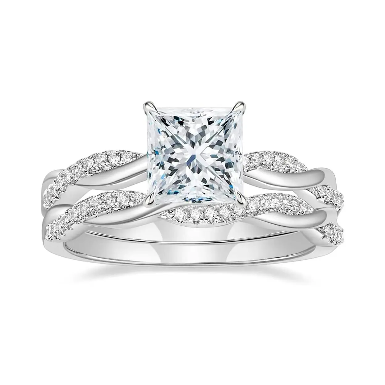 This AAAAA cubic zirconia simulated diamond wedding ring set for women shines brightly, sparkling like stars. The 2-carat CZ main stone, 7x7mm, features a brilliant princess cut. It's a stackable design, perfect for solitaire diamonique engagement rings.
