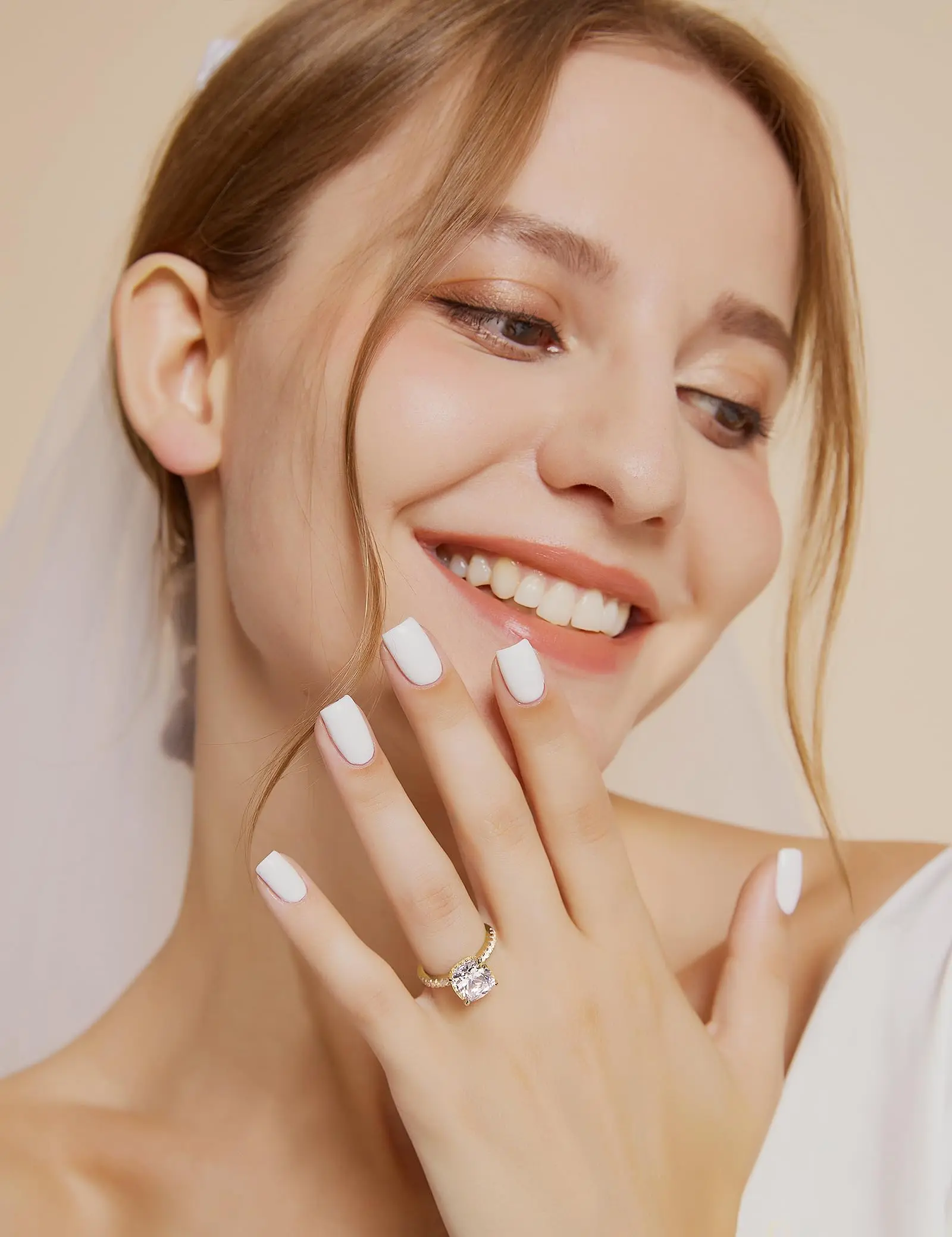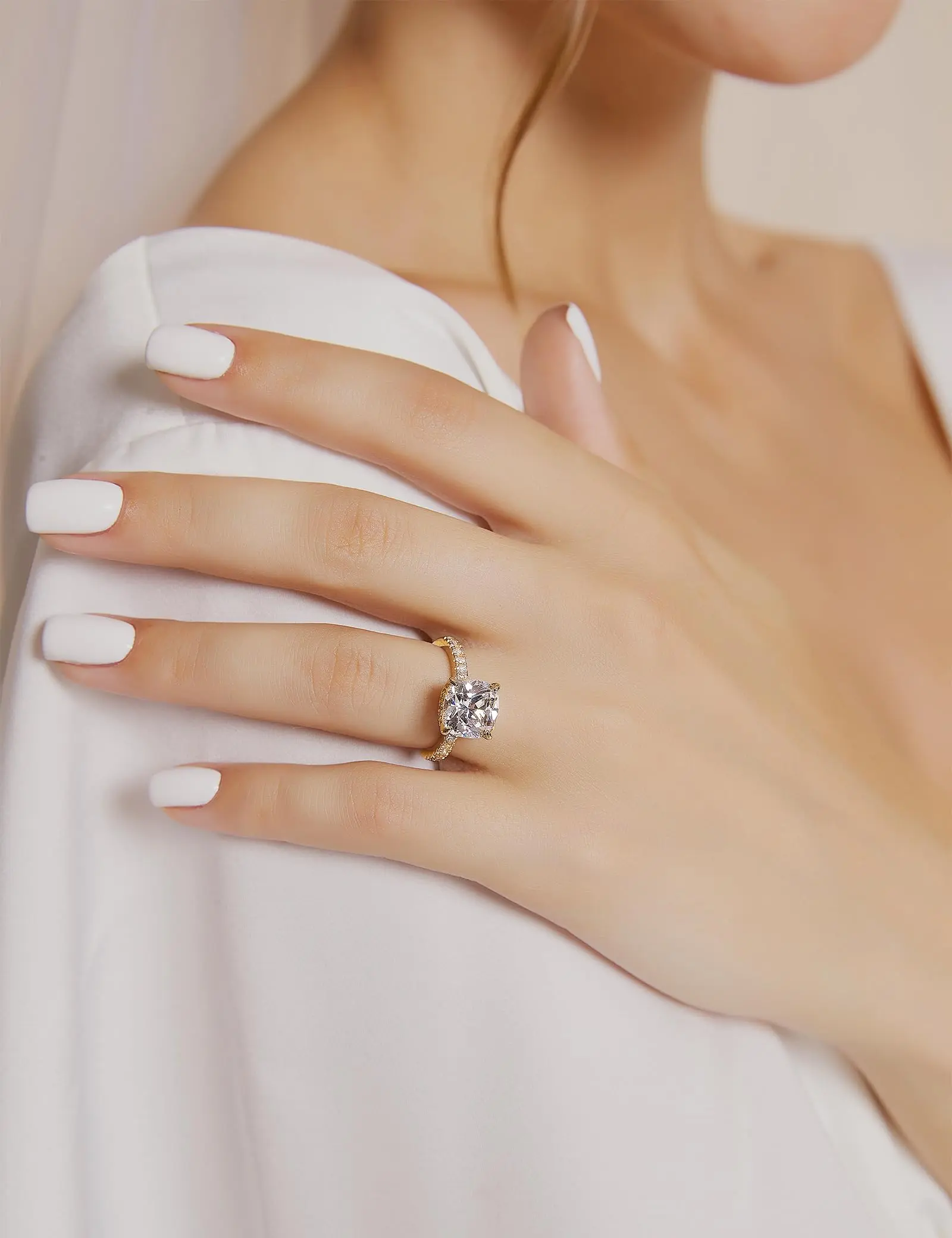 Ring is beautiful but the gold looks more silver in most lighting. Other than that great ring. The 3rd picture is next to a gold earring so you can see how white the gold looks.