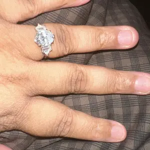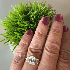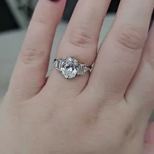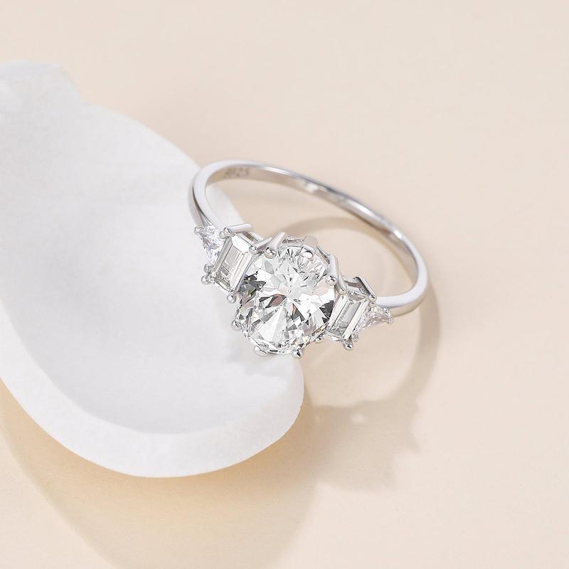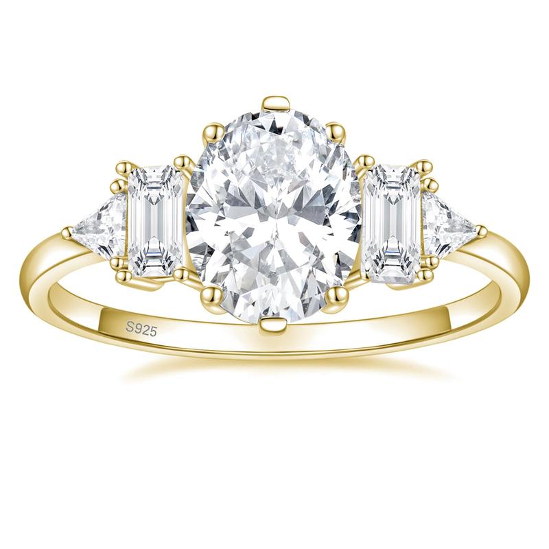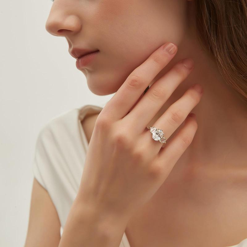 ·♥Elegance ♥ The centerpiece of this wedding band is a stunning 3-carat oval CZ of exceptional quality, surrounded by 2 baguette-cut and 2 triangle-cut side cubic zirconia stones. The layout in this design is simple yet grand, making them a perfect match for both everyday wear and special occasions