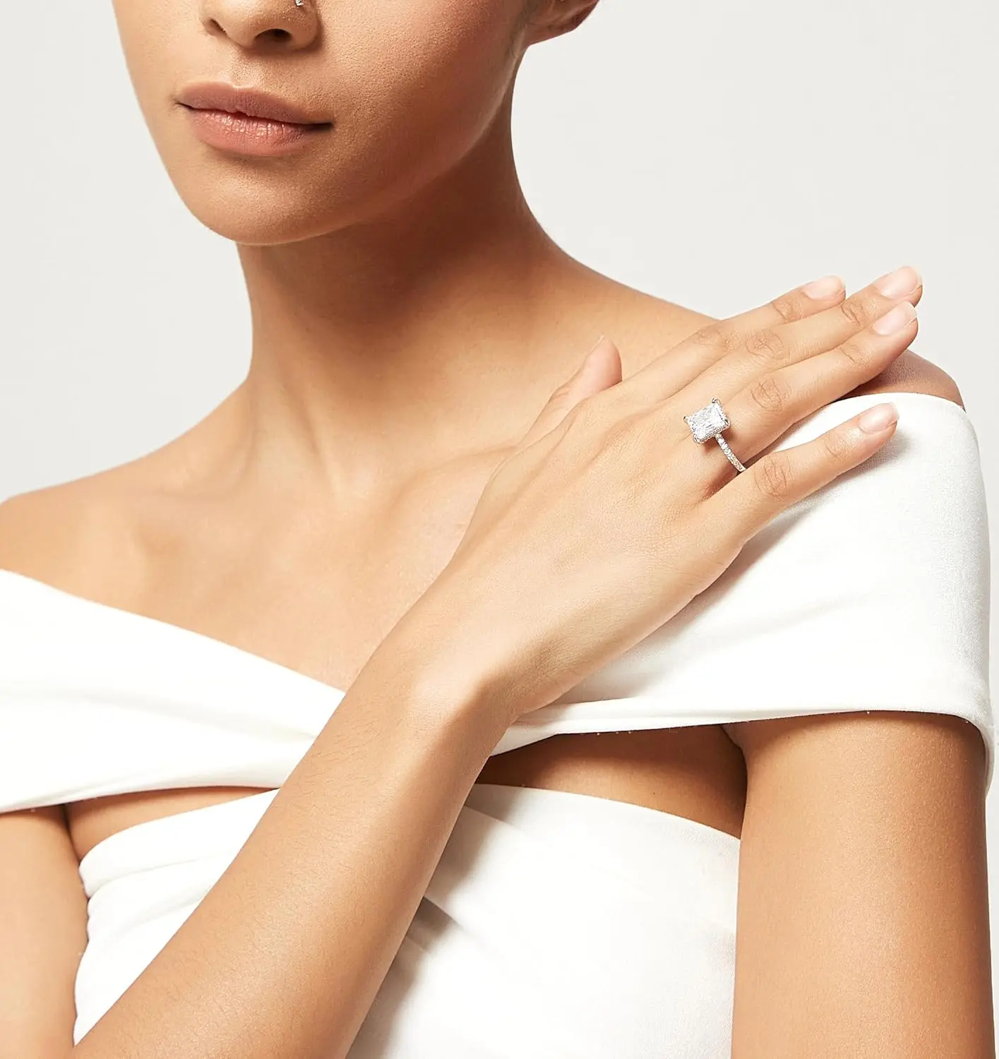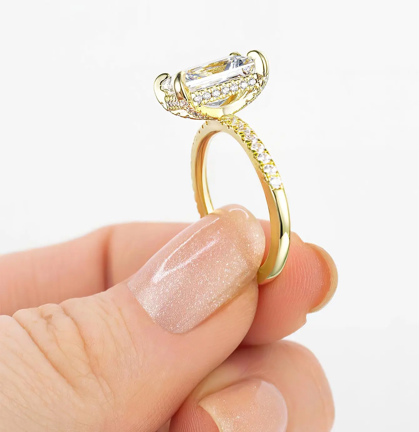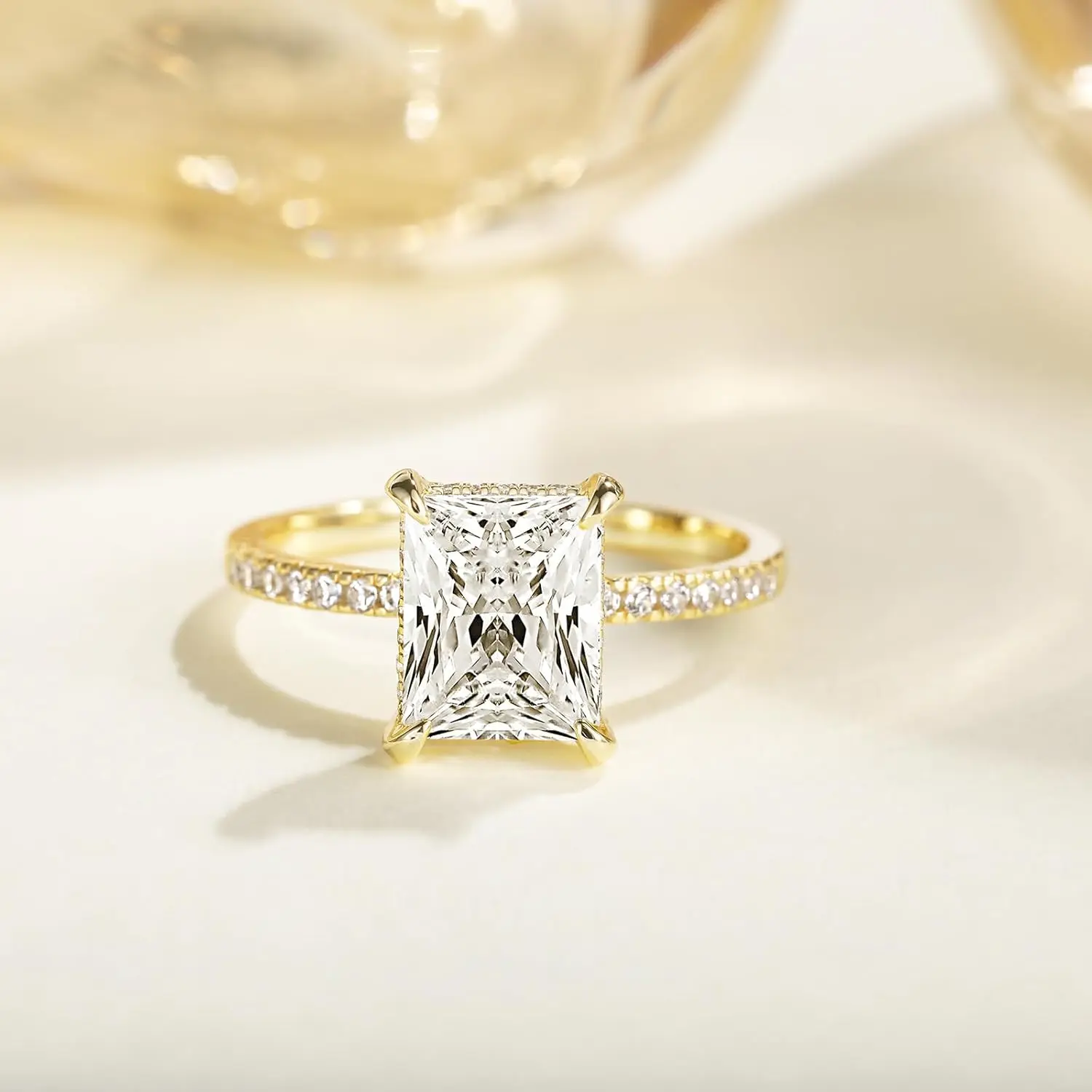 ·Main Stone: 5A radiant cut 4CT 8x10mm cubic zirconia.