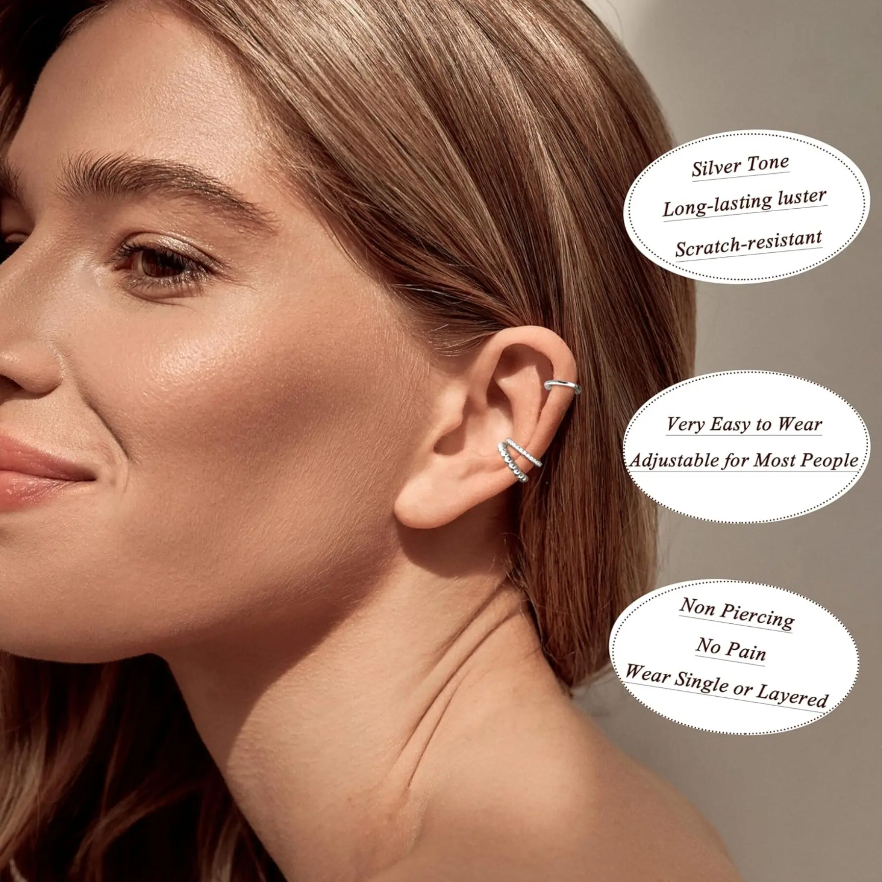 ·【Ear Cuffs Non Piercing】Our set features three pairs of non-pierced earrings in a classic and minimalist style that wrap around your ear, creating the illusion of an orbital piercing;They can be worn layered or alone, and are adjustable for a comfortable fit;For people without perforation, it is a great blessing as they can avoid the pain caused by perforation.