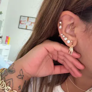 great for professions that dont allow piercings!! Barely visible depending on where the piercing is located. it catches the light glare in certain cartilage piercings but overall amazing. I like that the top clasps have different sizes aswell!! I’ve bought these 2x! Below is a pic for reference