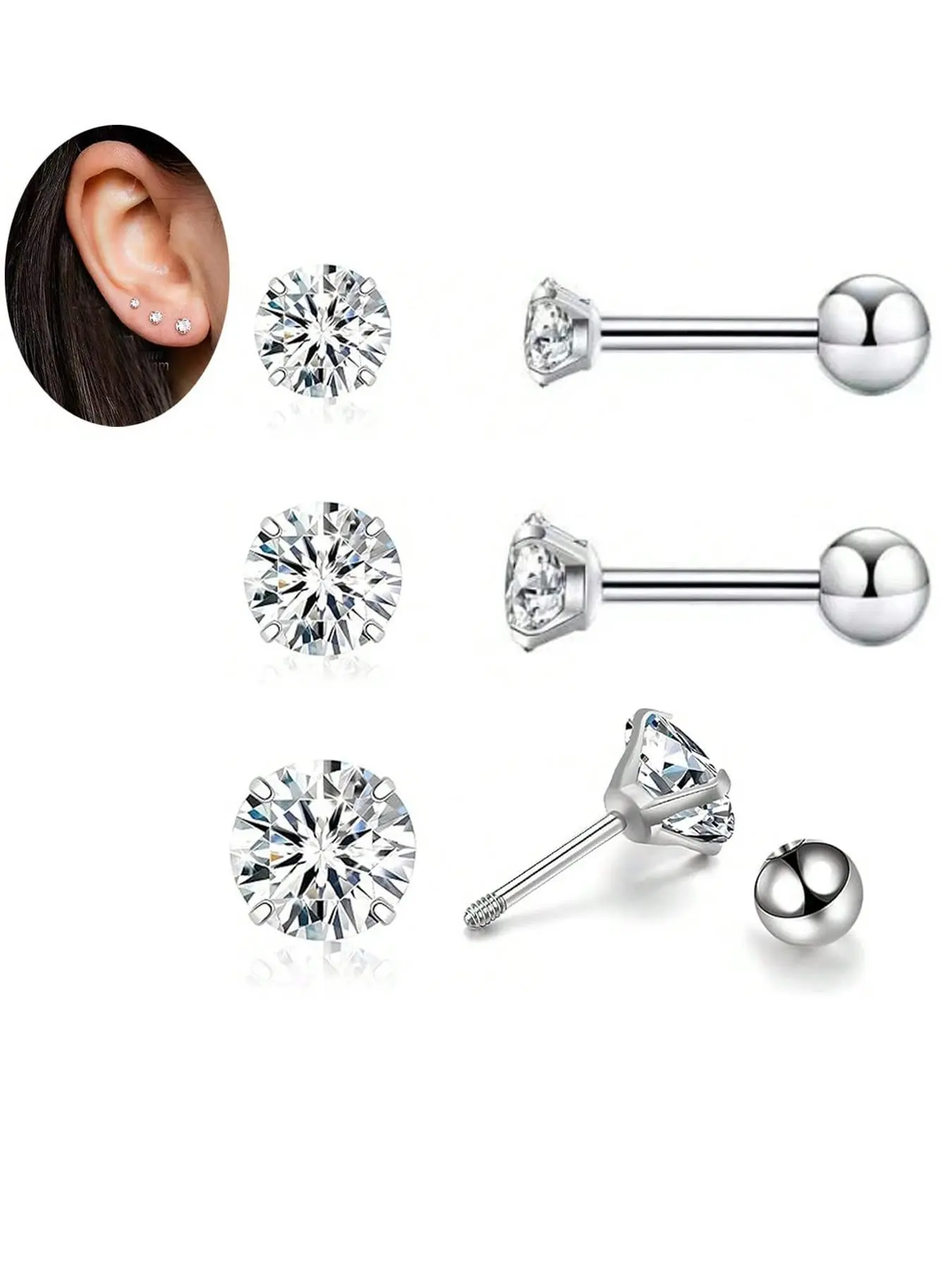 Artificial Zirconia Decorated Earrings Set, Elegant for Women & Girls, Stainless Steel Inlaid Artificial Zirconia Ear Studs, Stud Earrings Jewelry