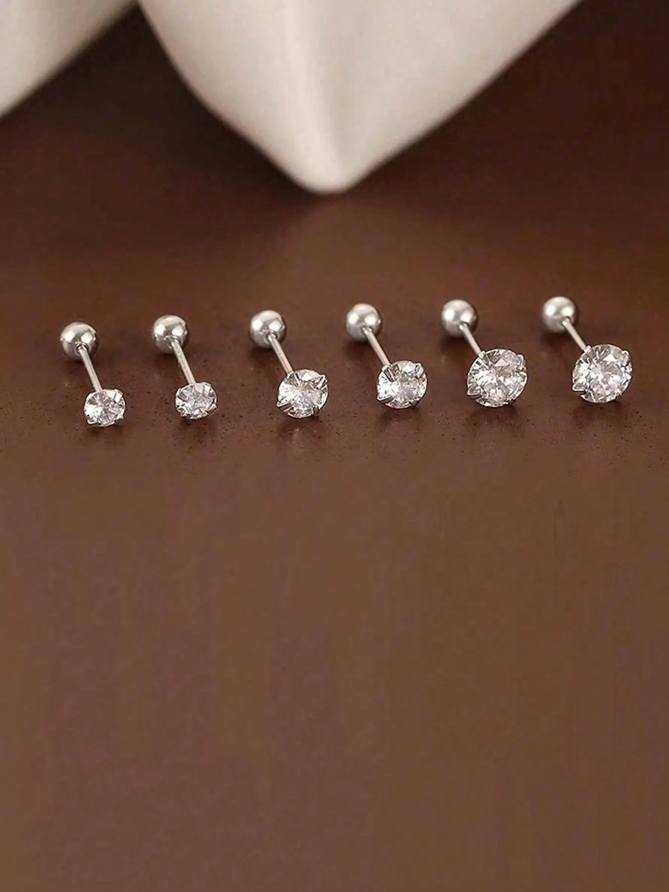 Flat Back Earrings-Silver Color, 6 counts