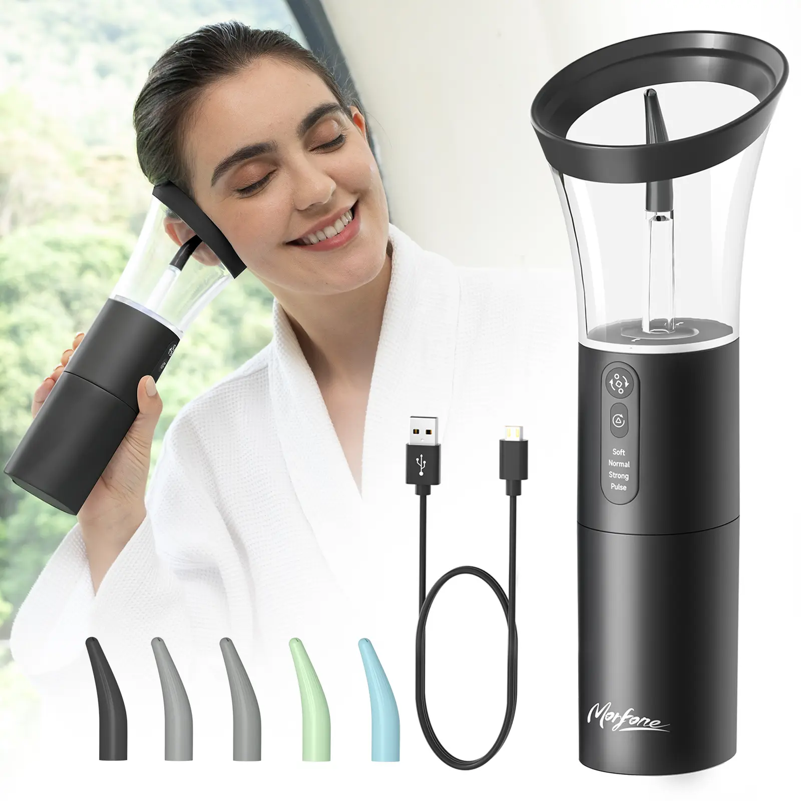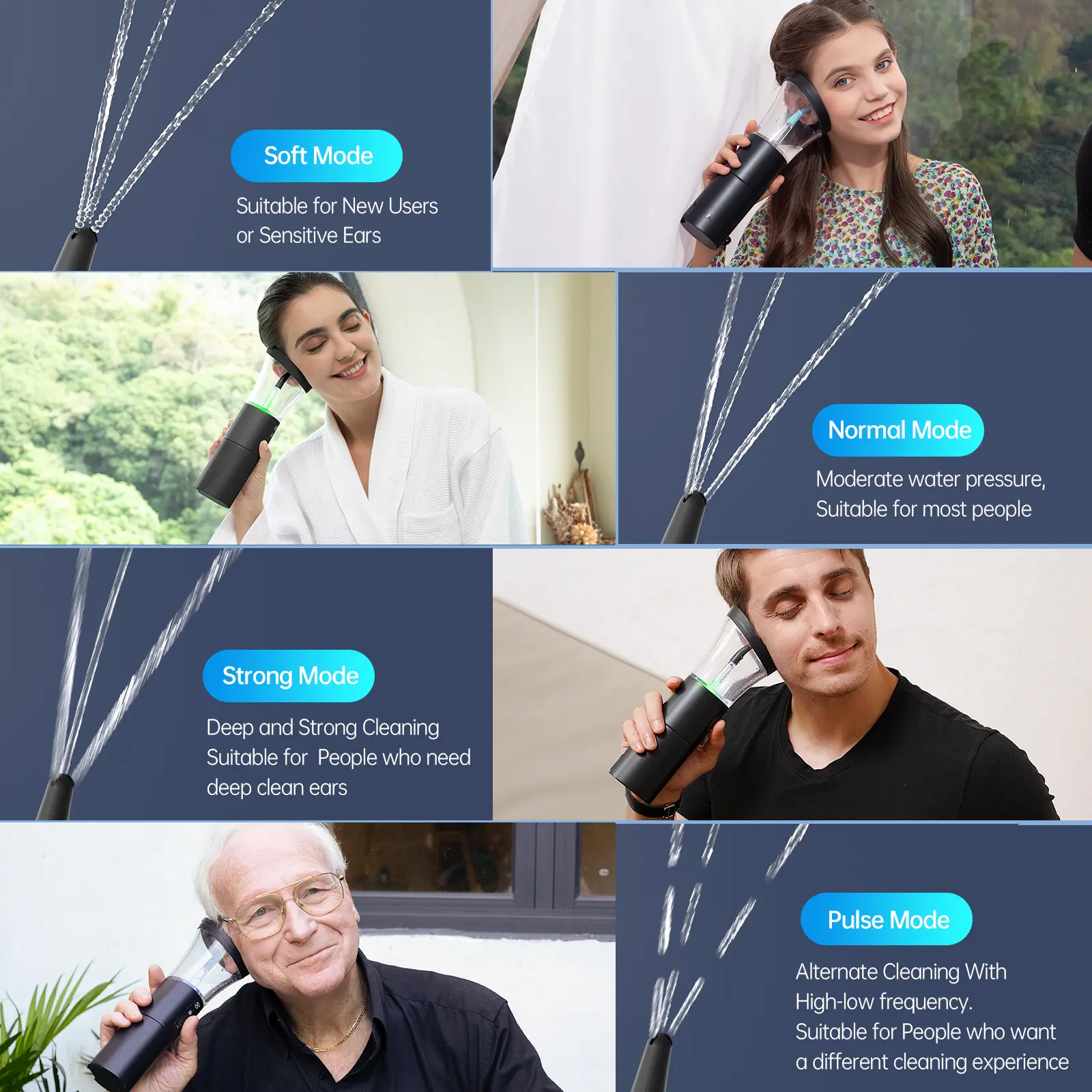 3. 270-Degree Spray Clean Technology: Equipped with 3 holes that spray at a 270-degree angle, our product offers a wider and more thorough cleaning experience compared to traditional direct sprays, reducing the risk of water damaging the eardrum.