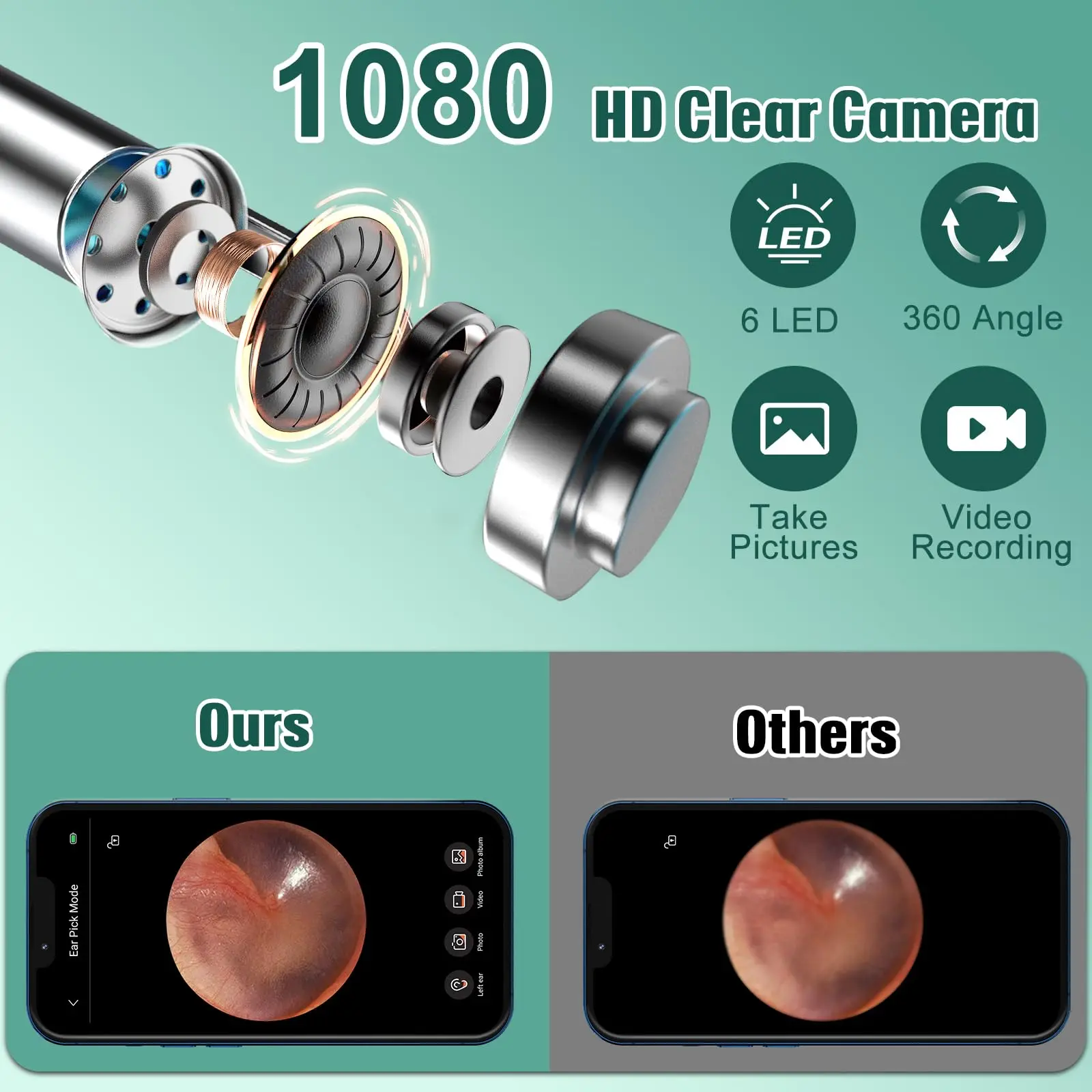 Ā·ćHigh light ledćEquipped with 6 high-brightness LED lights, 3.5mm inner diameter lens with 1080P full HD camera, which greatly enhances the brightness and sharpness of the image in ear canal. Making your earwax removal more completely and safely.