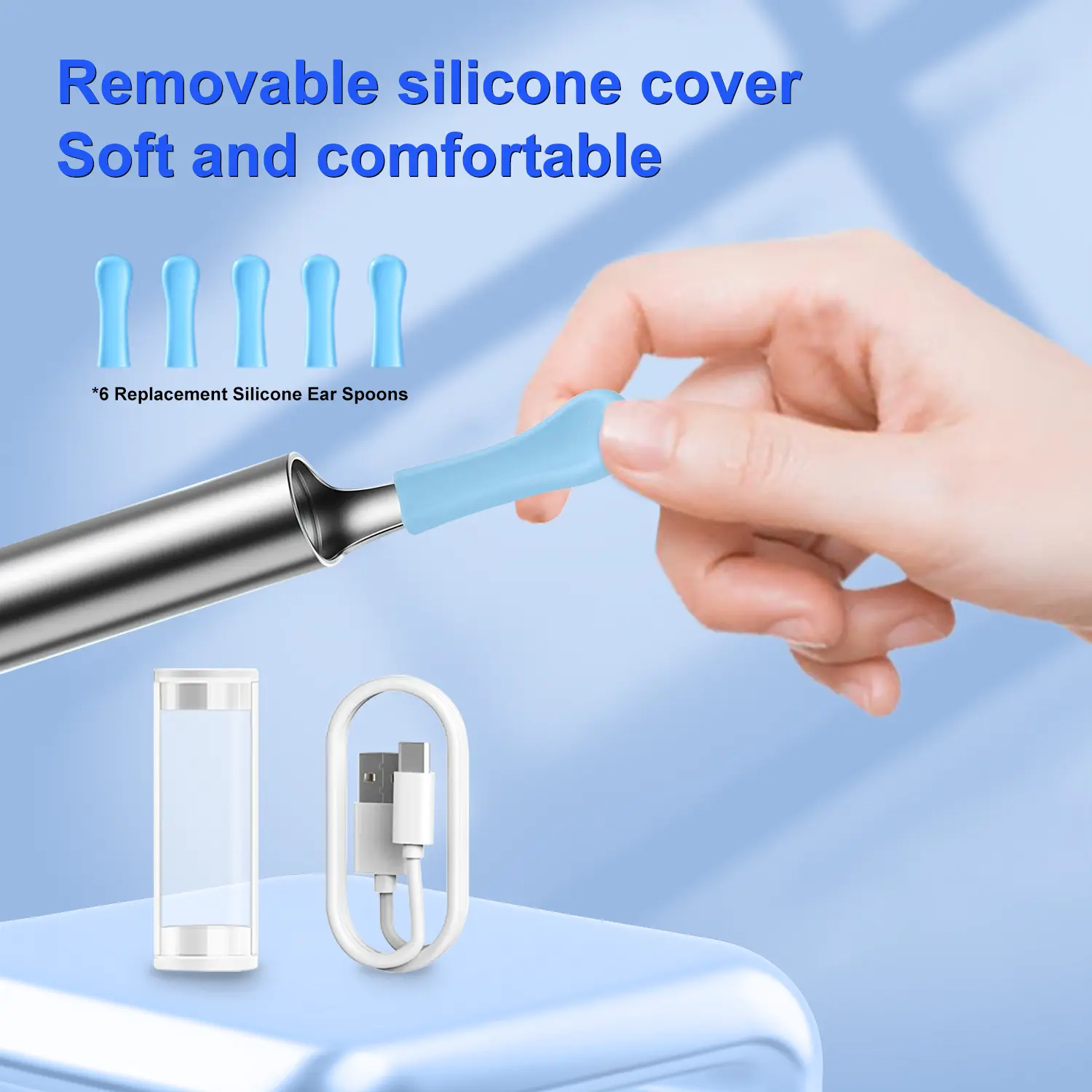 ·Multiple Cleaning Tools: In addition to its primary ear-cleaning function, the device comes with a range of interchangeable silicone tips to cater to different ear cleaning needs. Users can select the most suitable tool based on their individual preferences.
