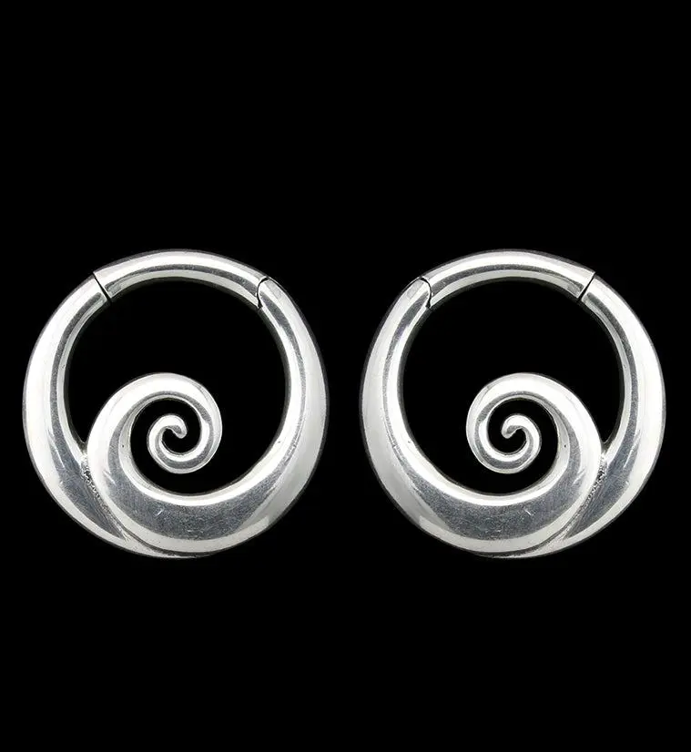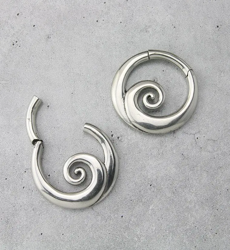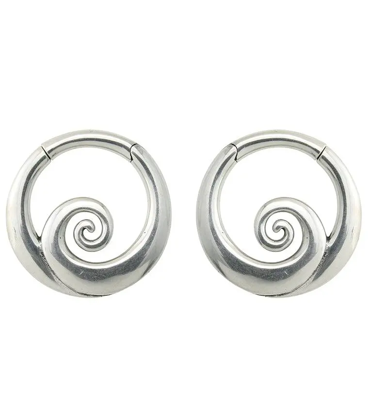 Handcrafted brass ear weights made from white brass with a swirl design. Hinged for easy insertion and removal. Hinge is magnetic. Height: 40mm, width: 40mm. Height and width are approximate as these are handcrafted. Size is 6G (4mm) with an approximate weight of 18 grams each. Sold in pairs (2pcs).