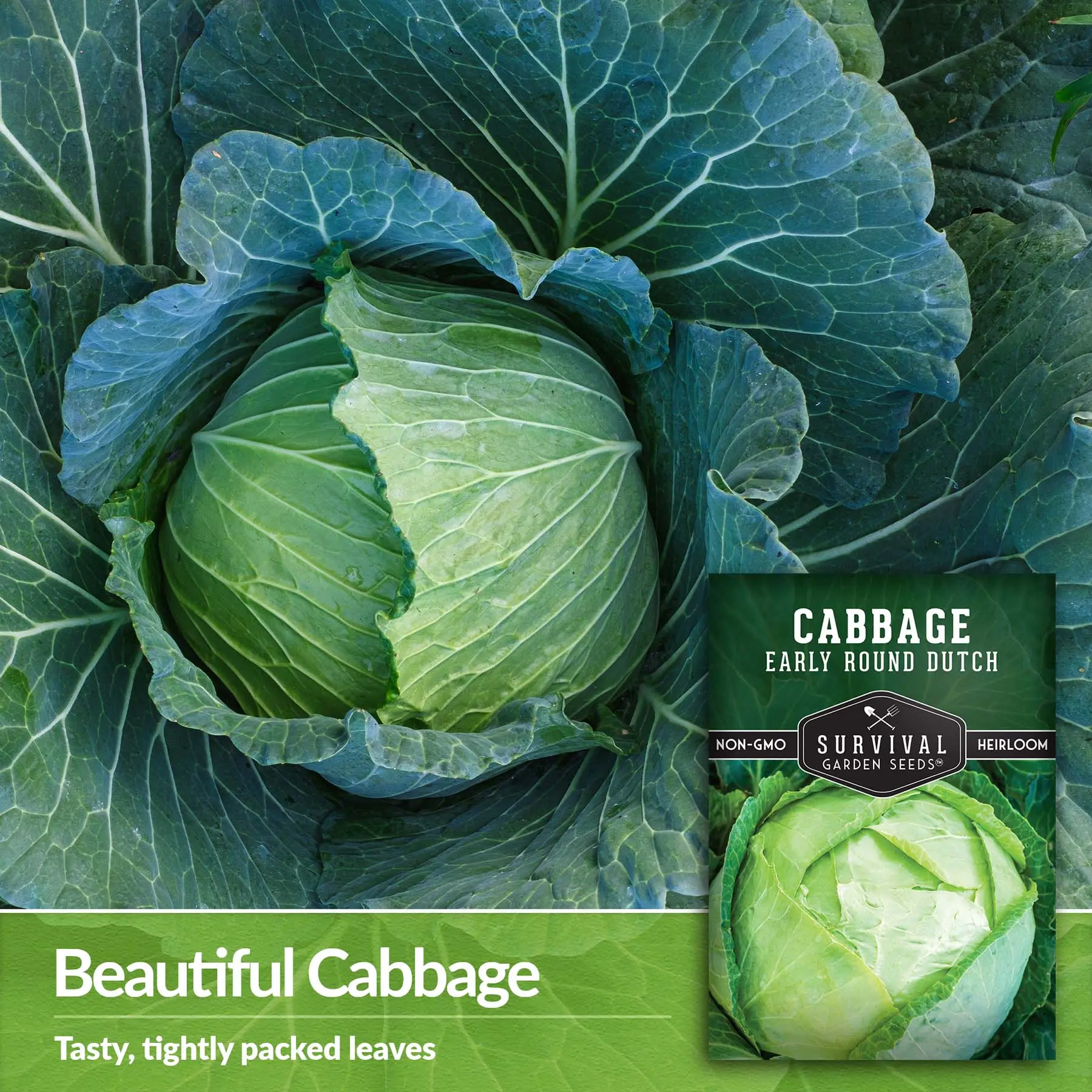 ·Tight Heads - Early Round Dutch is a white cabbage that produces dense, compact heads that average around 5 pounds apiece and 7 inches in diameter. The cup-shaped leaves have a sweet flavor that is excellent for coleslaw, cooking, and cabbage wraps.