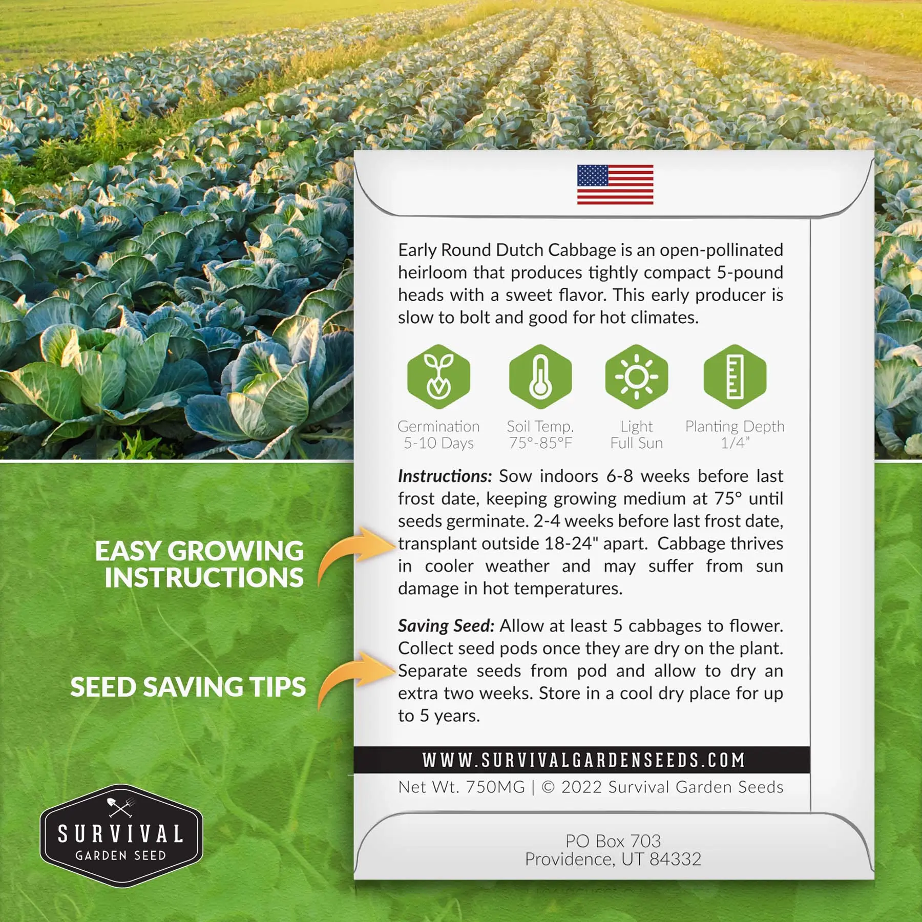 Early Round Dutch Cabbage is an open-pollinated heirloom that produces tightly compact 5-pound heads with a sweet flavor. This early producer is slow to bolt and good for hot climates. Good for sprouting indoors as microgreens.